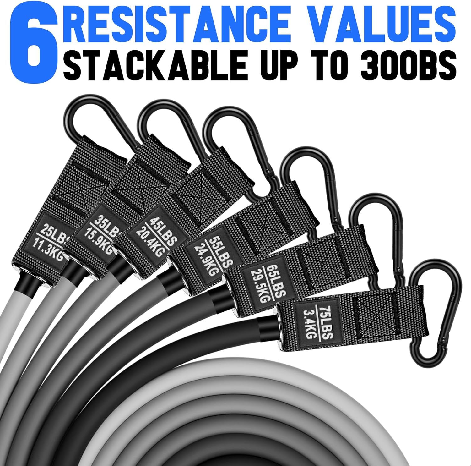 SUPERIOR QUALITY EXERCISE BANDS: For maximum longevity and safety during use, the 47" long resistance bands are made of high-grade natural latex with high-density nylon webbing and sturdy heavy metal climbing carabiners that won't break or deform. Each tube fitness band is double-layered and carefully constructed to provide maximum resistance. making it more elastic and durable, safe, and reliable. Which can withstand intense daily exercise sessions and ensure your training goes perfectly.
