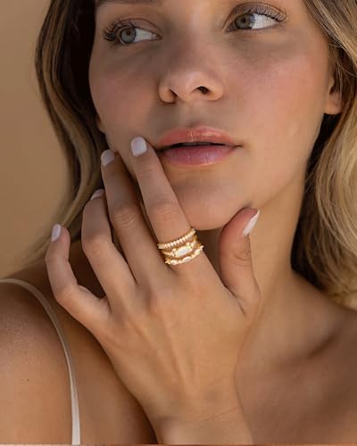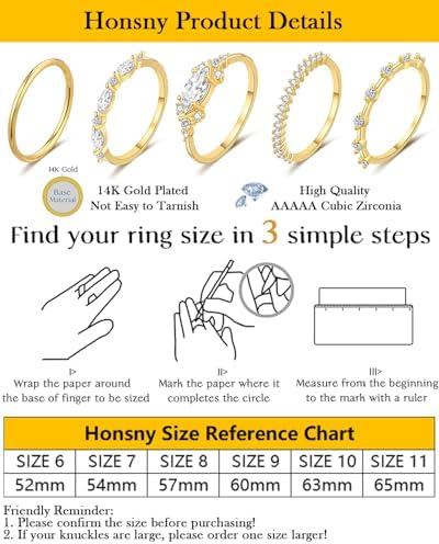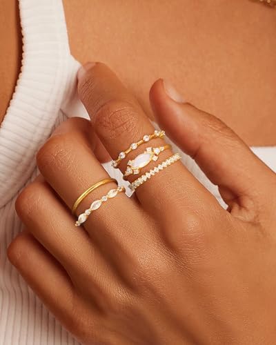Stackable Gold rings: An order consists of 4 or 5 different styles of stackable rings, simulated diamond rings, promise rings. Each set of gold rings contains a unique diamond element, very shiny, fashion cute design, these rings can be worn alone or stacked, gold rings are the perfect match for engagement rings or wedding rings, making you more elegant and sophisticated. Diamond Ring Set: The dainty ring is made of high quality brass with cubic zirconia gemstones, 14k gold plated and highly polished to prevent oxidation and maintain a lasting shine while showing your nobility. This ring is lead -free nickel-free, hypoallergenic, and won't make your fingers green, red, or itchy. Can meet your daily wear. The ring is a minimalist modern design, trendy and yet classic, suitable for most women and teenagers. 14k gold plated ring size: 5 sizes to choose from (US size #7, #8, #9, #10, #11). The stylish gold ring can be stacked or used on its own, perfectly matching an engagement ring or wedding ring, or just as a simple ring, stacked ring, thumb ring, ring, anniversary promise ring. Simple and modern. The perfect gift: There are many styles in the ring set, each of which is very popular with women. The ring symbolizes true love and eternity. For someone you love or for yourself. Gold rings are one of the most popular pieces of jewelry for women. On Valentine's Day, Christmas, Thanksgiving, Mother's Day, Halloween, birthdays, this is the perfect gift for your lover, sister, mother, friend, or significant other. After-Sale Warranty: your satisfaction is our pursuit, in the purchase process if you have any questions, please feel free to contact us, we will provide you with the best solution within 24 hours.