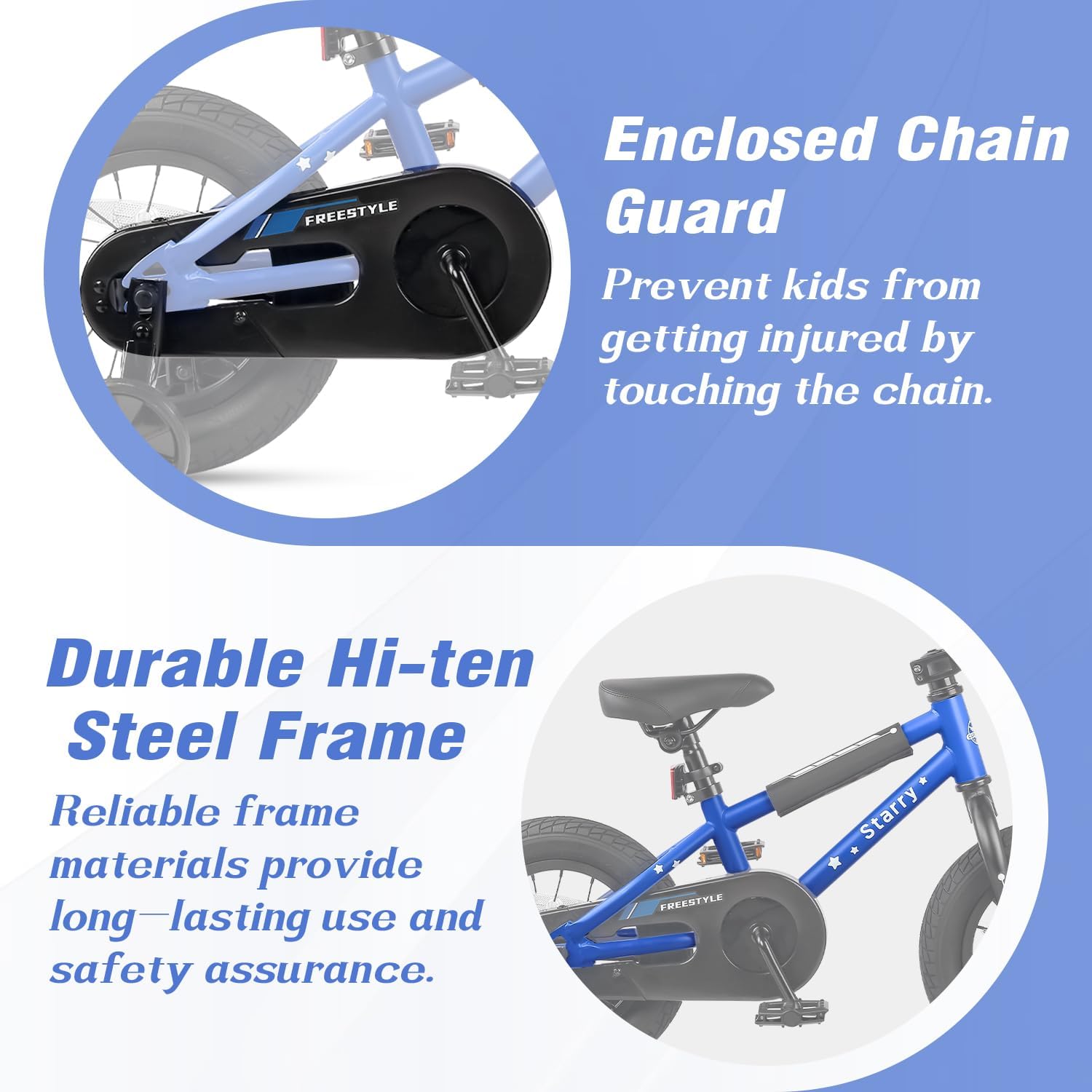 - 【Child-Safe Braking System】 Features an easy-to-use coaster brake perfect for small hands, a full chain guard for safety, and wide tires for slip-resistant traction.