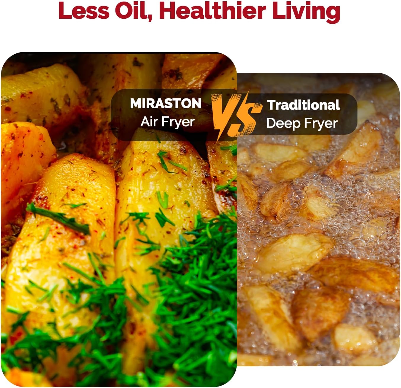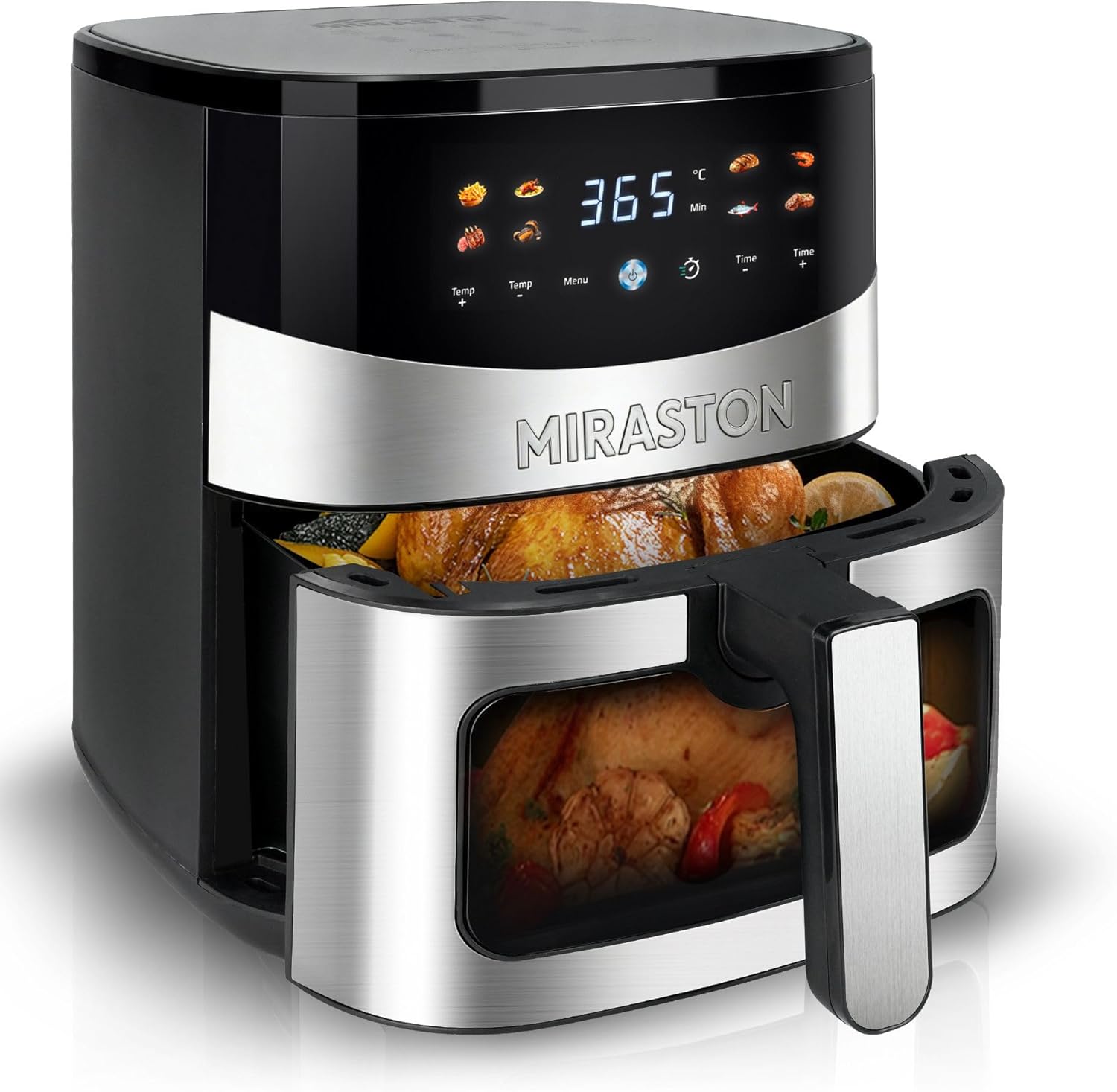 MIRASTON Air Fryer, 8.5QT Family Size Digital Air Fryers, BPA-Free, Smart Touchscreen with 8-Preset, Air Frying, Reheat Leftovers, Party Food, Fast Cooking, Dishwasher-Safe, Stainless Steel