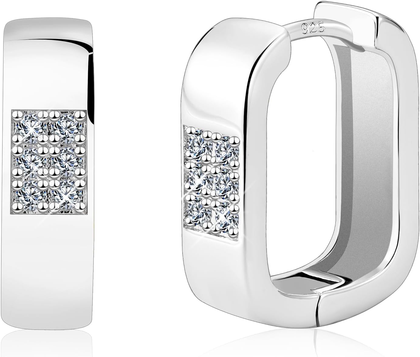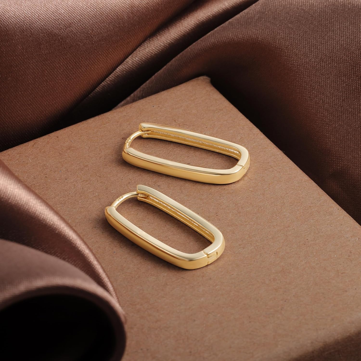 Sterling Silver Rectangle Hoop Earrings for Women Silver Geometric Rectangle Hypoallergenic Earrings Square Hoops Earring