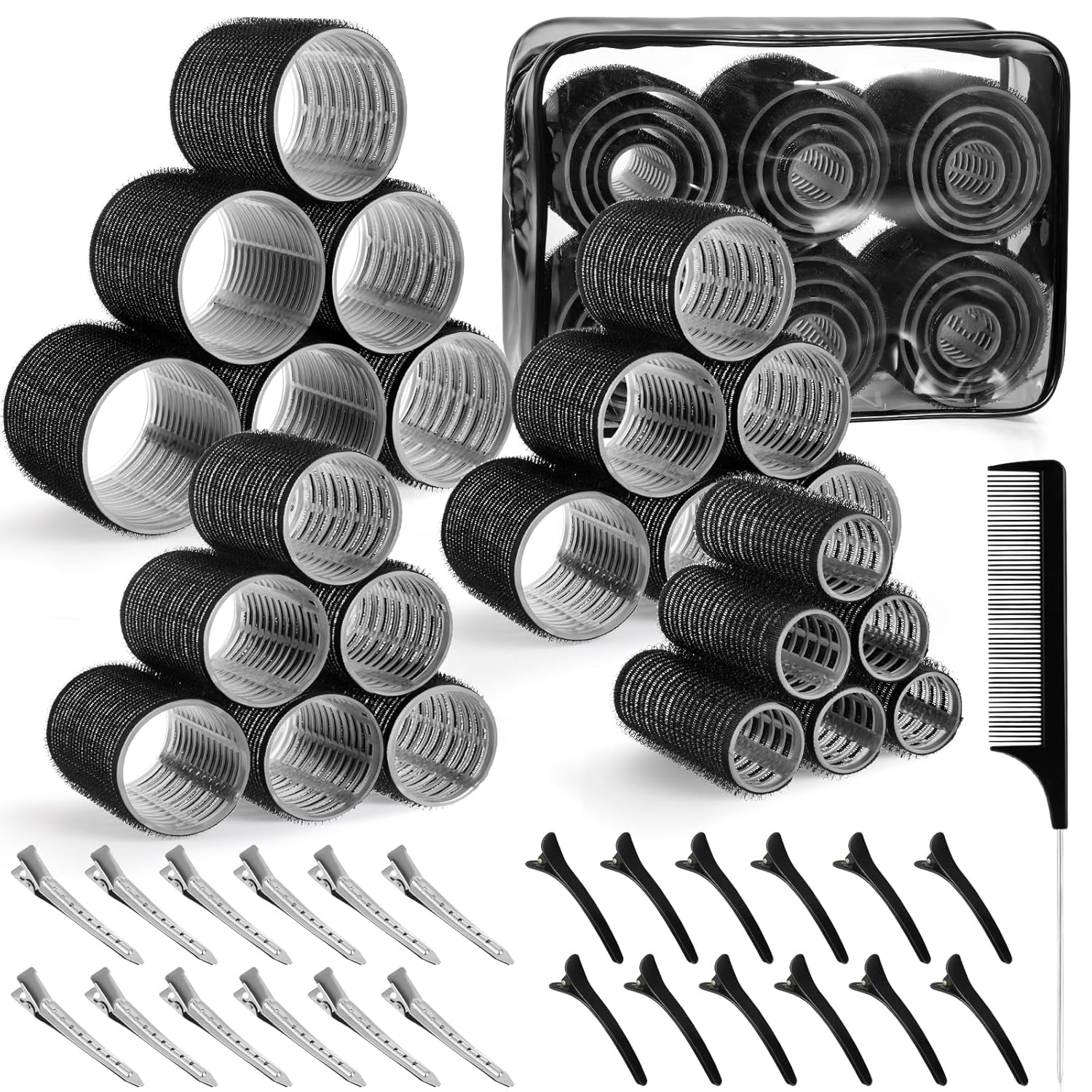 4 Sizes Self-Grip Hair Rollers Set for Long, Short Hair and Bangs - 50 Pcs with Clips (25mm, 36mm, 48mm, 60mm), Pink