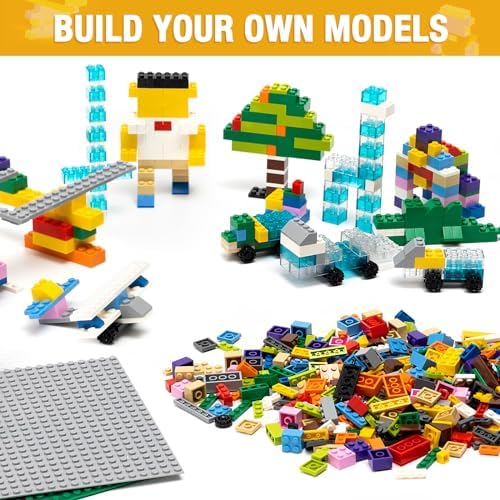 MANNIDOO 1600 Pieces Building Bricks, Building Bulk Block with 2 Packs 24x24 Studs Sticky Plate and 46PCS Wheel Accessory - Compatible with All Major Bricks, Gfits for Kid - 18 Shape/16 Colo