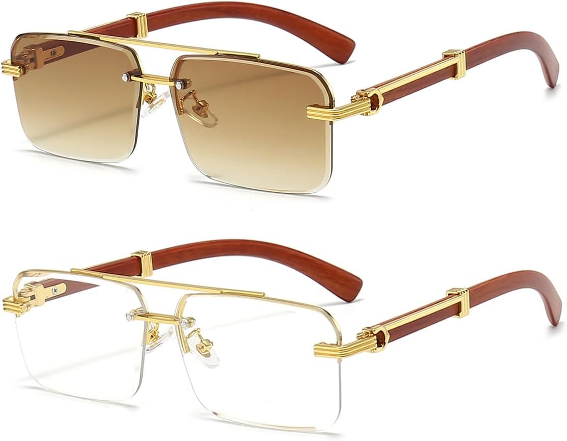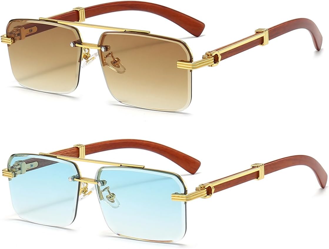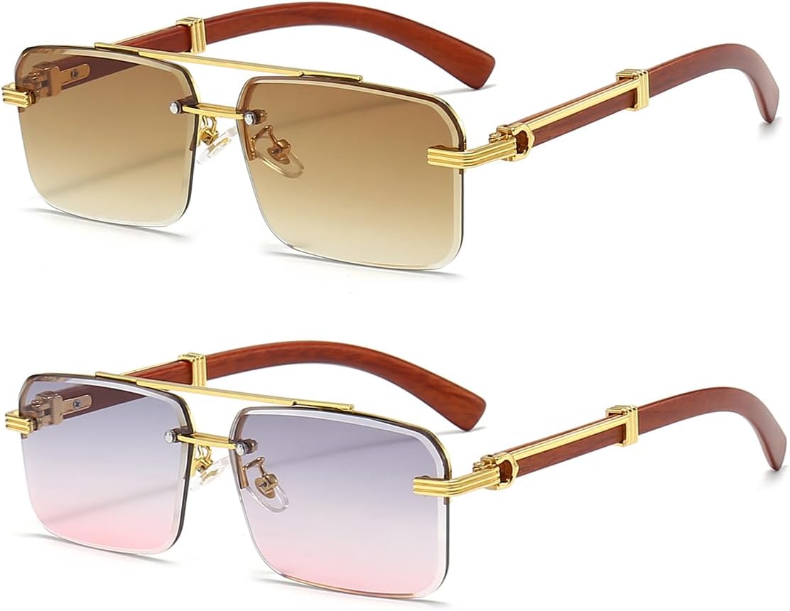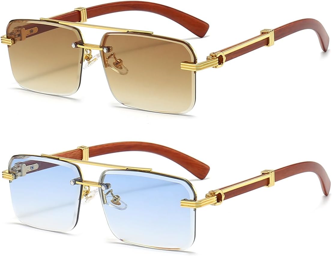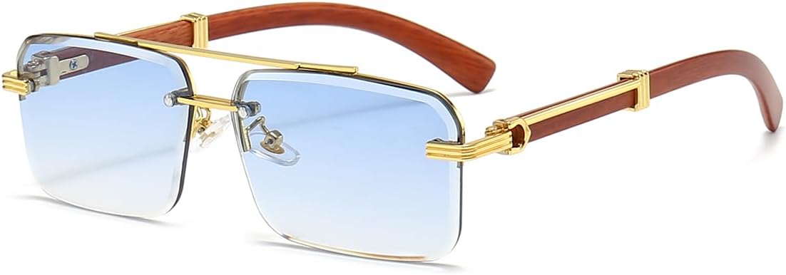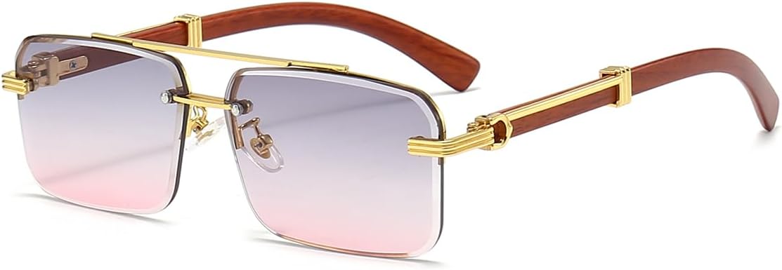 Gleyemor Mens Sunglasses Fashion Rimless Rectangle Sunglasses Square Frameless Sunglasses for Men