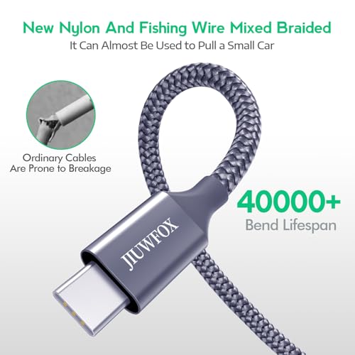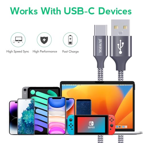 JIUWFOX USB to USB C Cable, (5-Pack, 3/3/6/6/10 ft) for iPhone 17 16 Charger Cord Fast Charging, for Samsung Galaxy S25 S24 S23 S22 A17 A16, Pixel 10 9