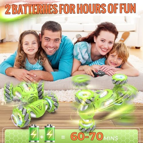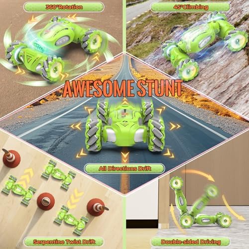 Gesture Sensing RC Stunt Car Toys Gifts for 6-8 8-12 Kids, 2.4Ghz 4WD Hand Controlled RC Car with Light & Music & Spray, Double-Sided 360° Rotating Birthday for Boys