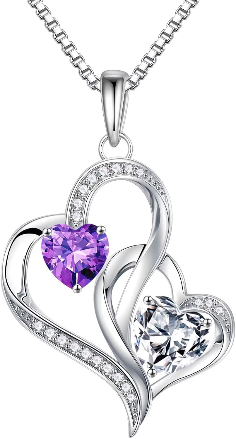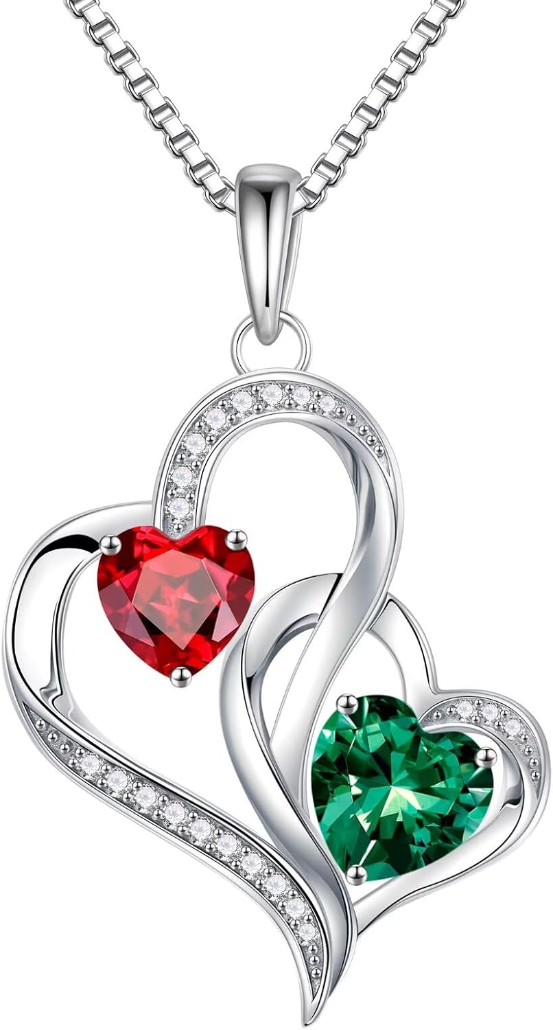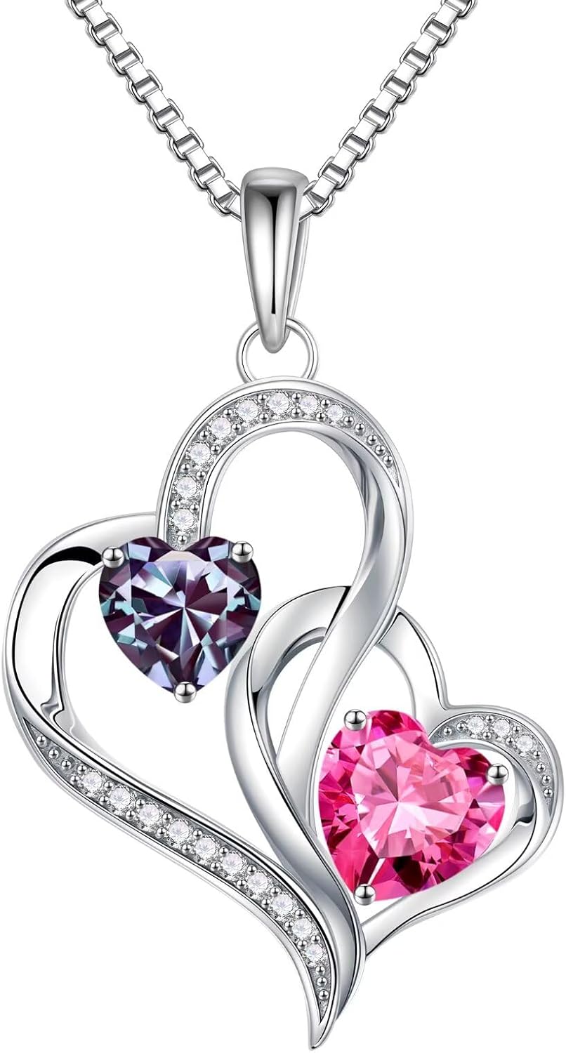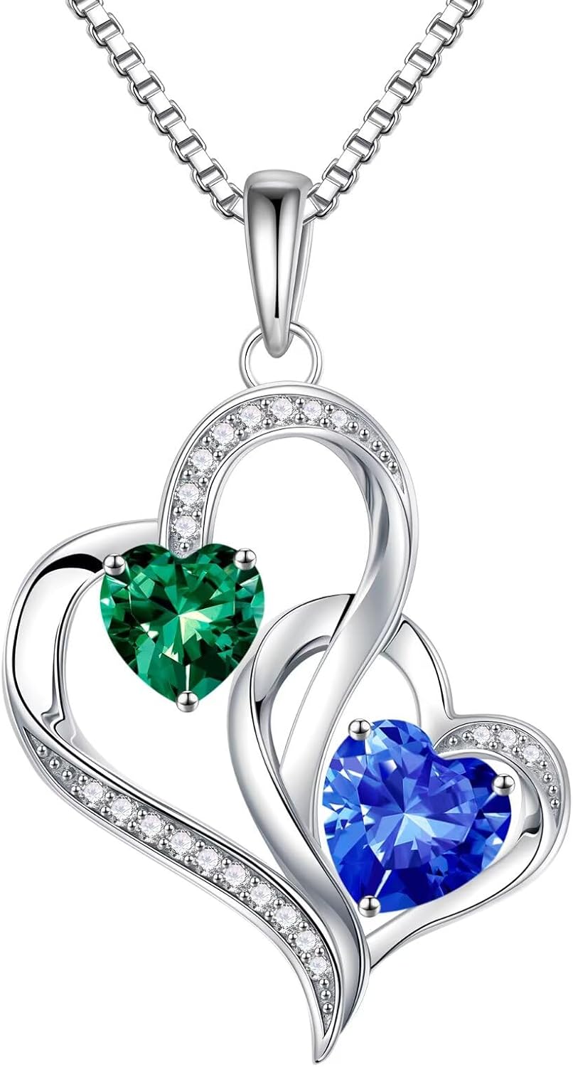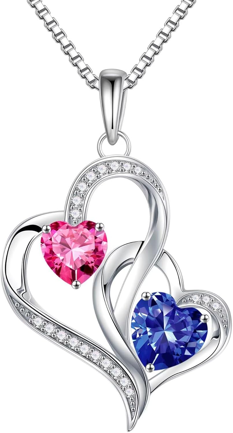 Iefil Mothers Day Gifts for Wife - 925 Sterling Silver Double Birthstone Heart Necklace | Anniversary Birthday Gifts for Women | Birthstone Jewelry for Wife Mom Girlfriend
