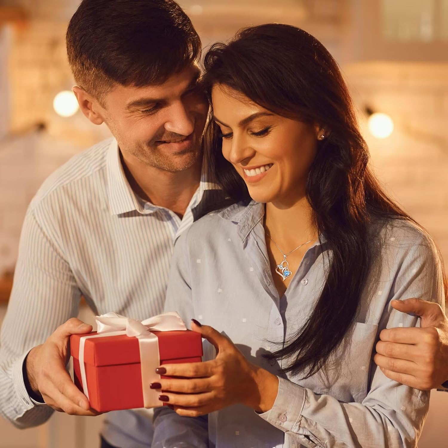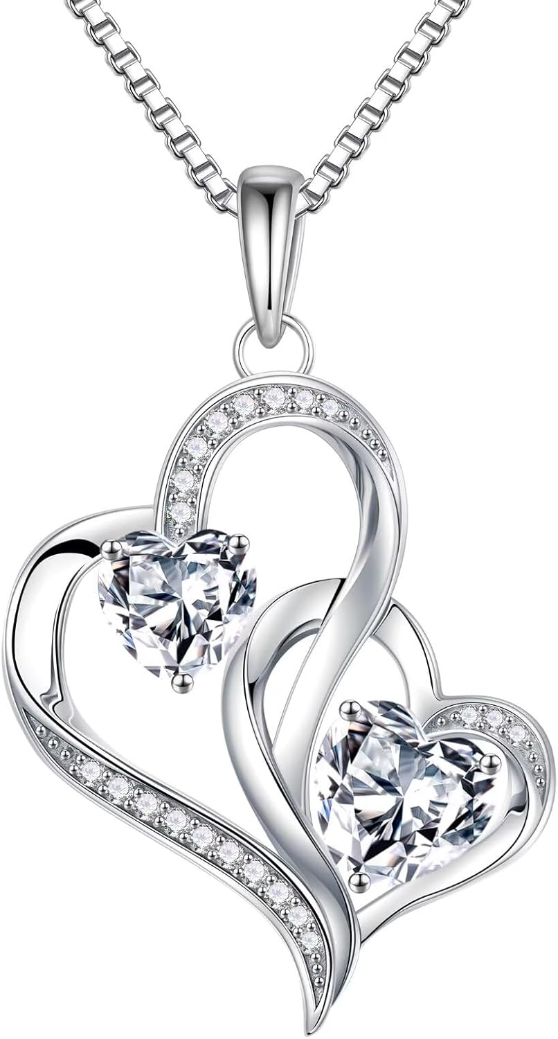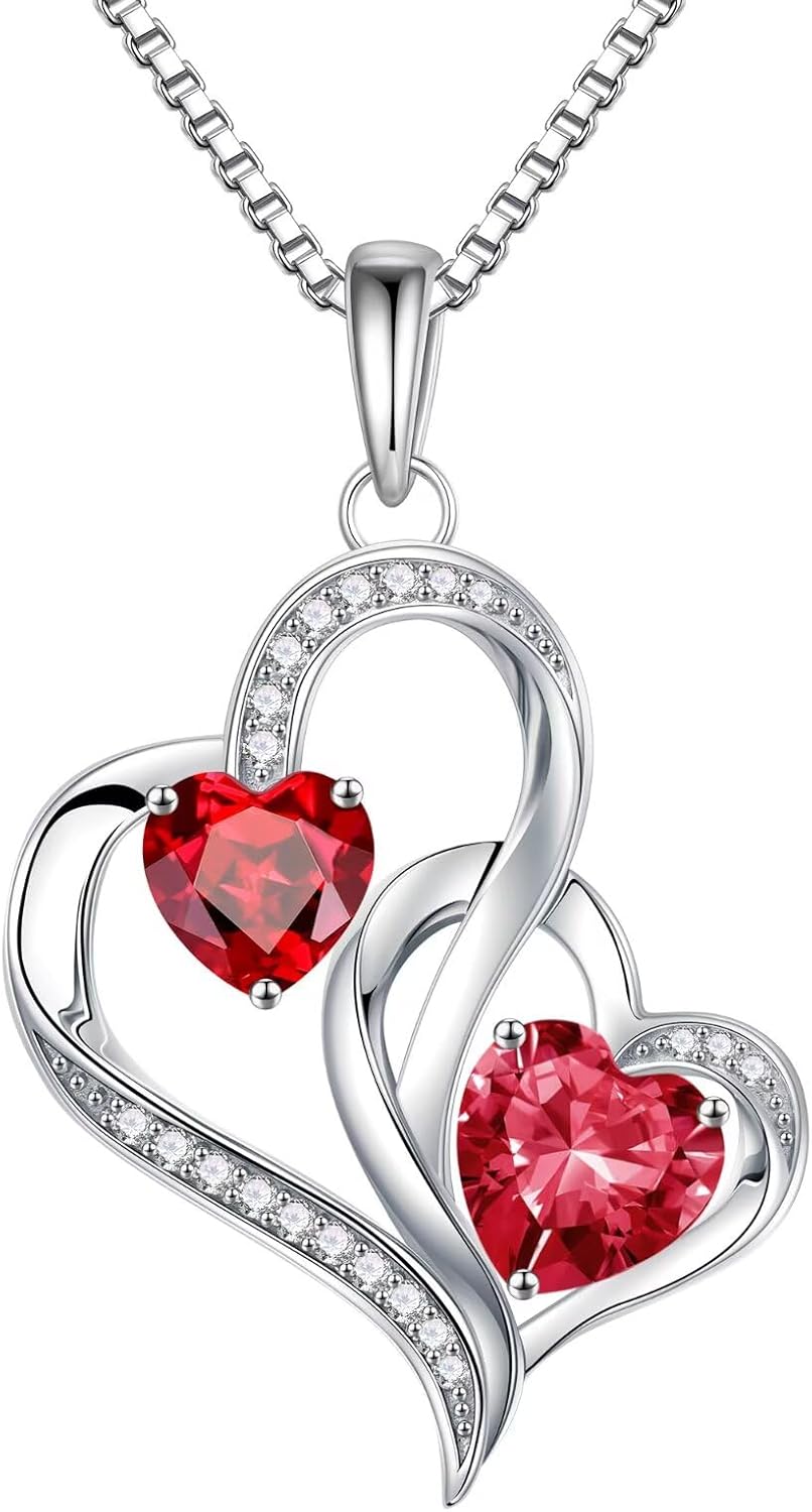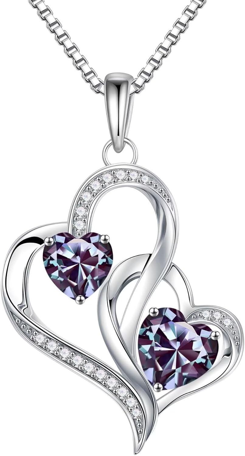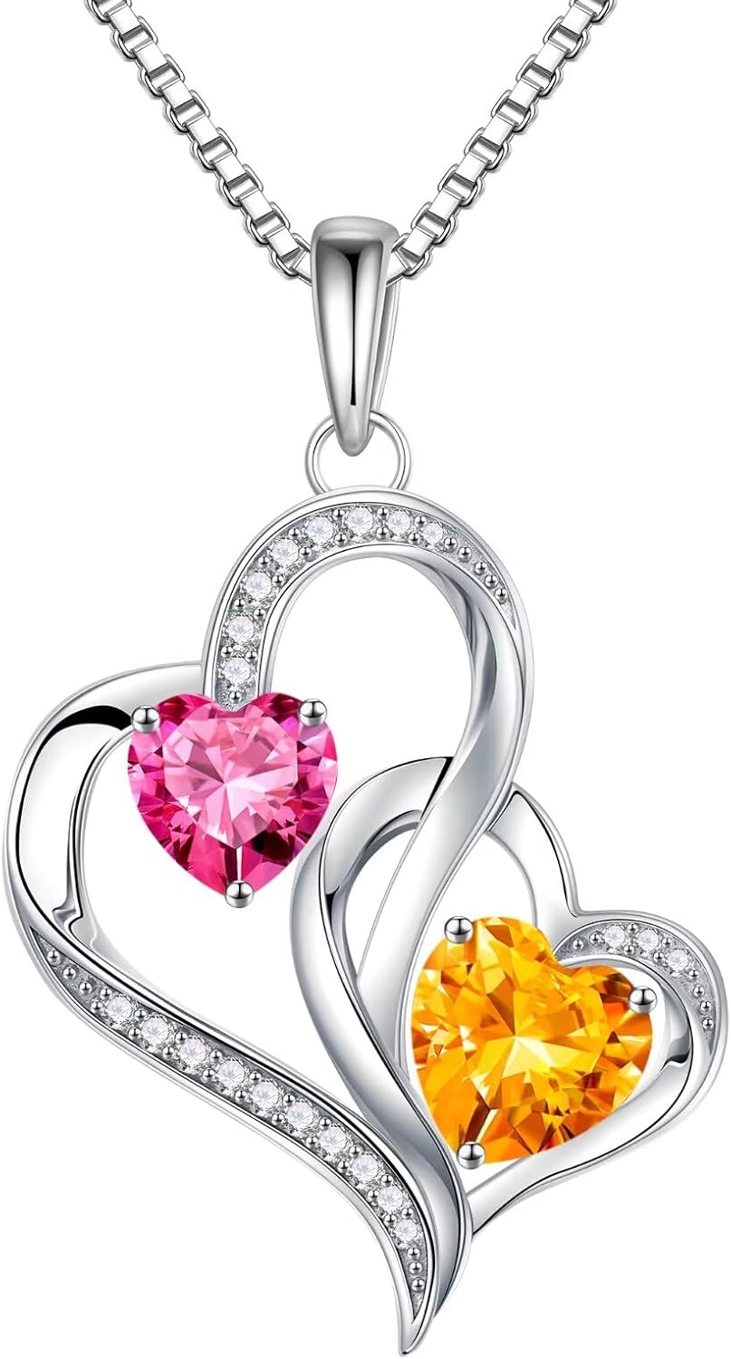 Iefil Mothers Day Gifts for Wife - 925 Sterling Silver Double Birthstone Heart Necklace | Anniversary Birthday Gifts for Women | Birthstone Jewelry for Wife Mom Girlfriend