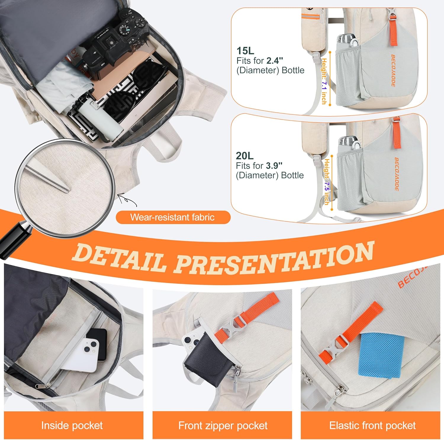 BECOJADDE 15L Small Hiking Backpack for Men Women Foldable Packable Back Pack Ultralight Hiking Daypack for Travel Camping Outdoor, Beige