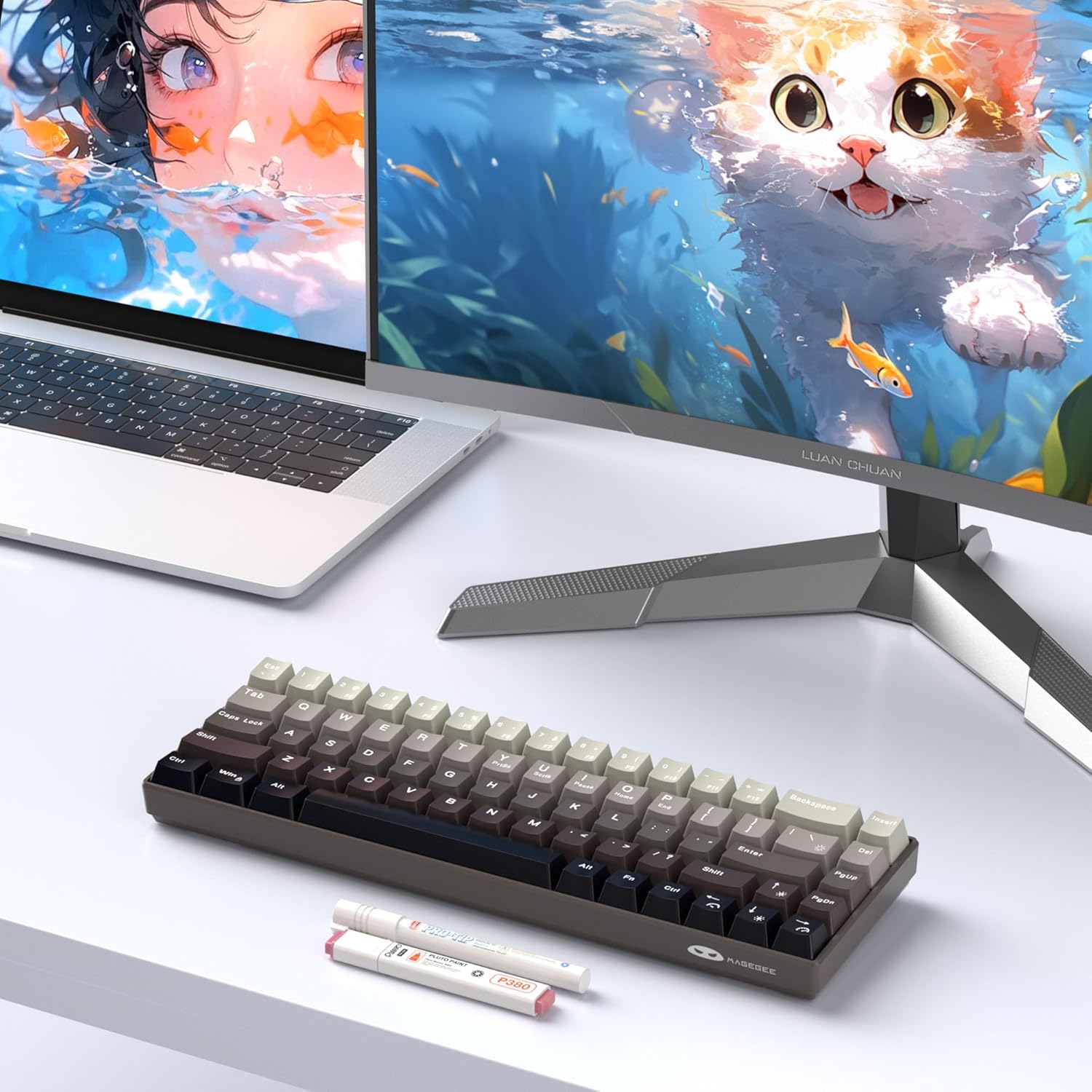 MageGee Portable 60% Mechanical Gaming Keyboard, Hot Swappable Blue Whale Switch, RGB Backlit Compact 68 Keys Mini Wired Gradient Custom Keyboard for Windows Laptop PC, with Silencing Cotton, Black