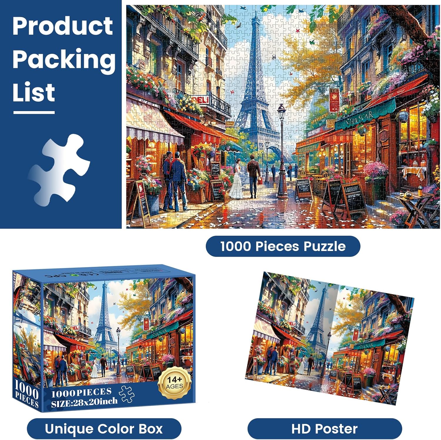 1000 Pieces Puzzle for Adults - Charming Paris Puzzle for Adults Children - Recycled Paper Jigsaw Puzzle 1000 Pieces - Fun and Challenging Family Game Great Gift Idea, Finished Size is 28 * 20 in