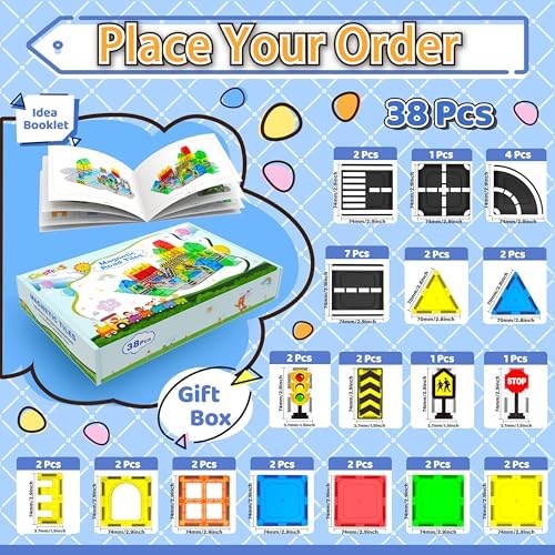 Magnetic Tiles - Road Set, Magnetic Building Blocks, Preschool Montessori Toys Gift for 3+ Year Old Boys and Girls, Sensory Christmas Toys for Kids Aged 3-5 and 4-8, Ideas for Toddler with Autism