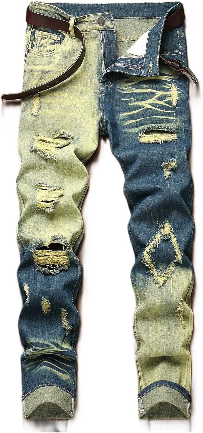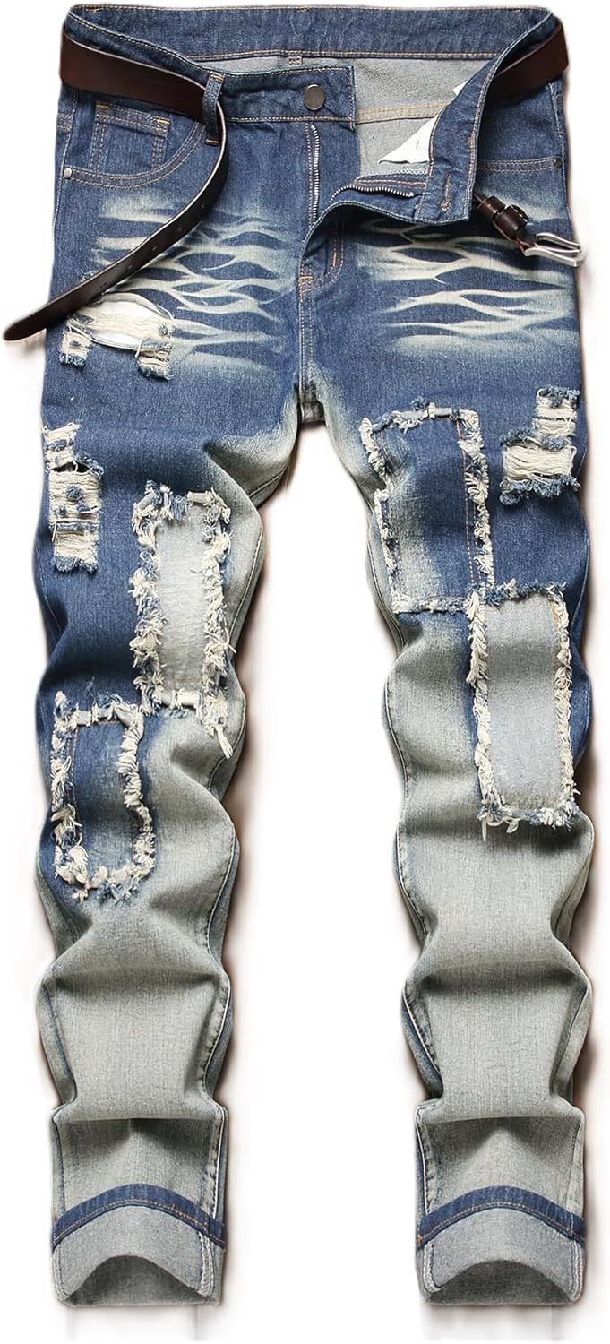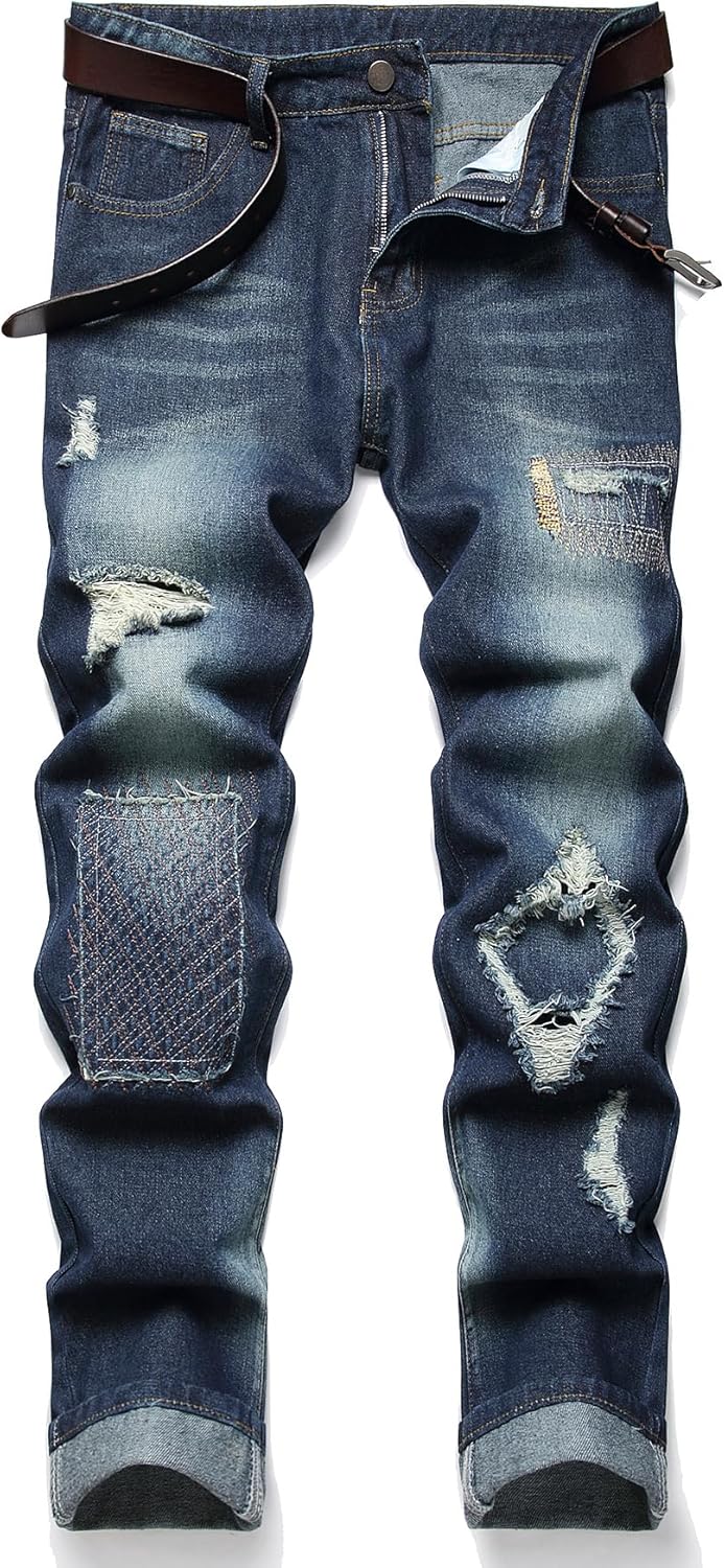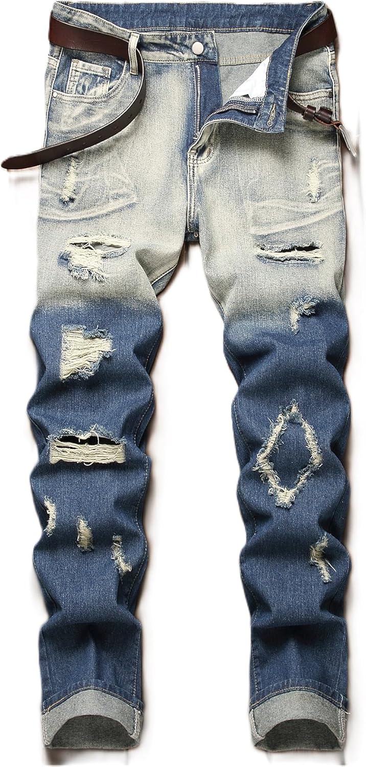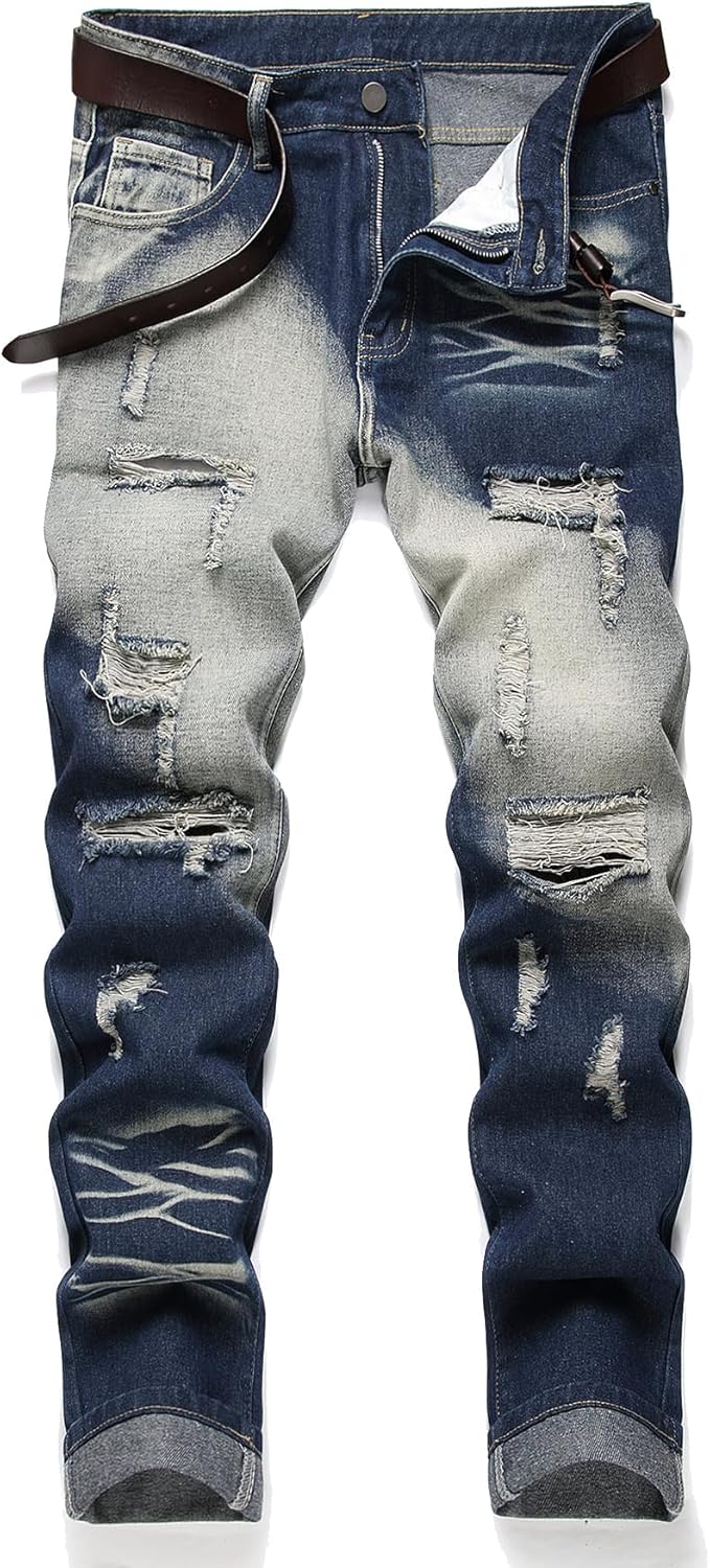 HIGH QUALITY - These men's ripped jeans are made of high quality and durable denim, which remains very soft and breathable even after many washes.