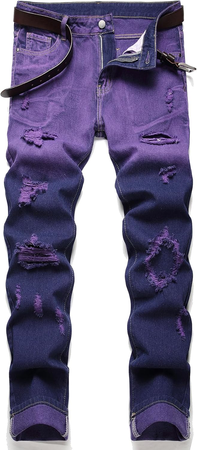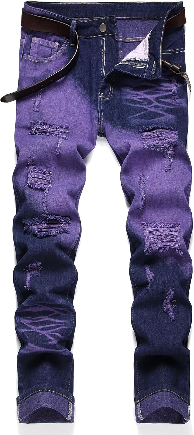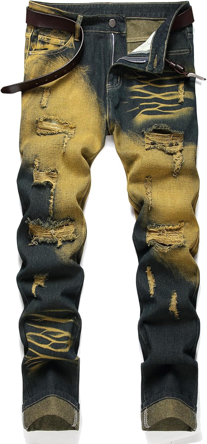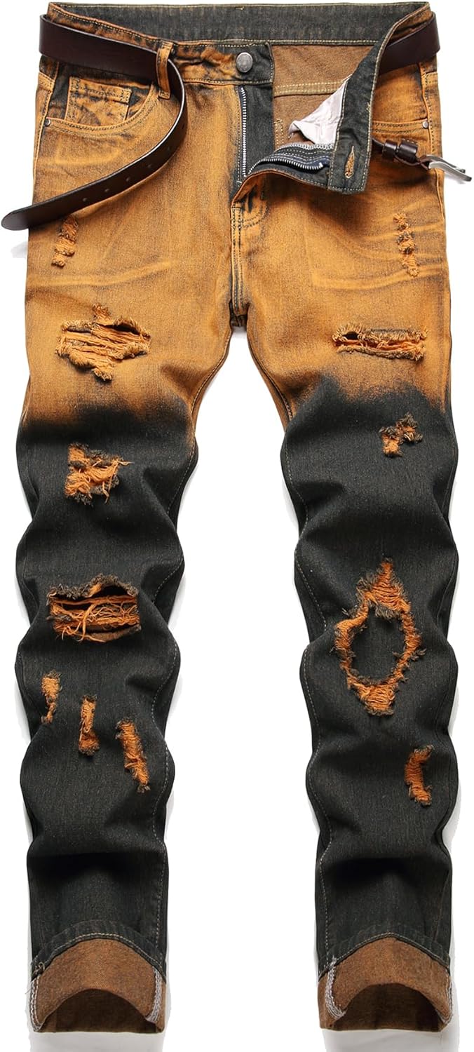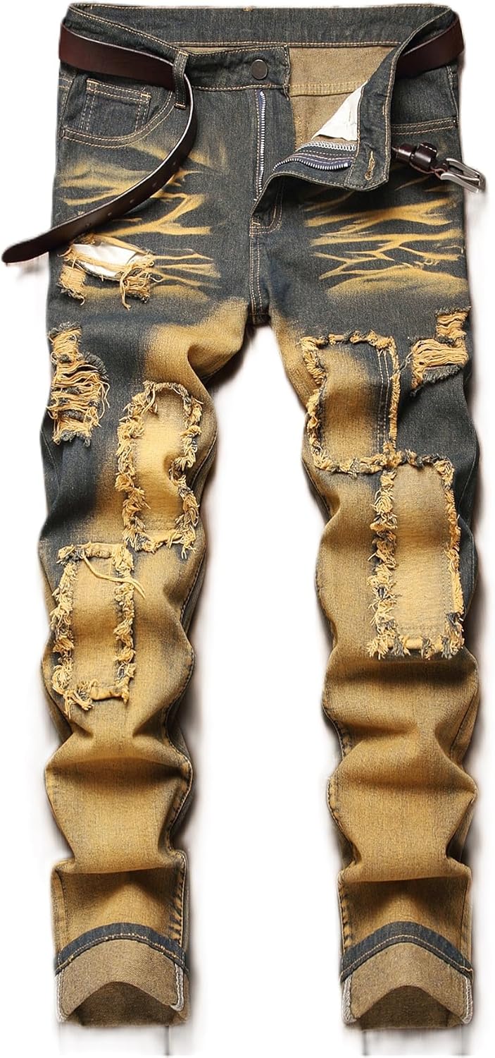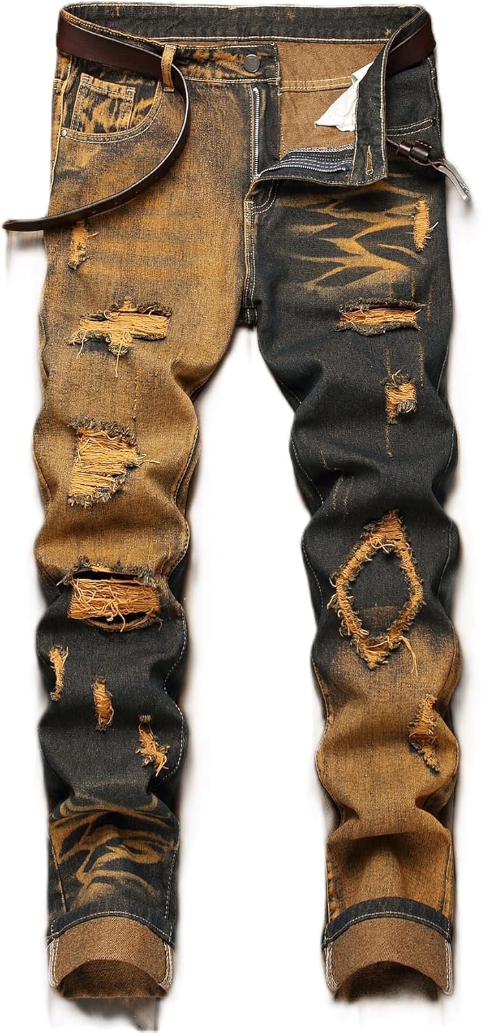 HIGH QUALITY - These men's ripped jeans are made of high quality and durable denim, which remains very soft and breathable even after many washes.