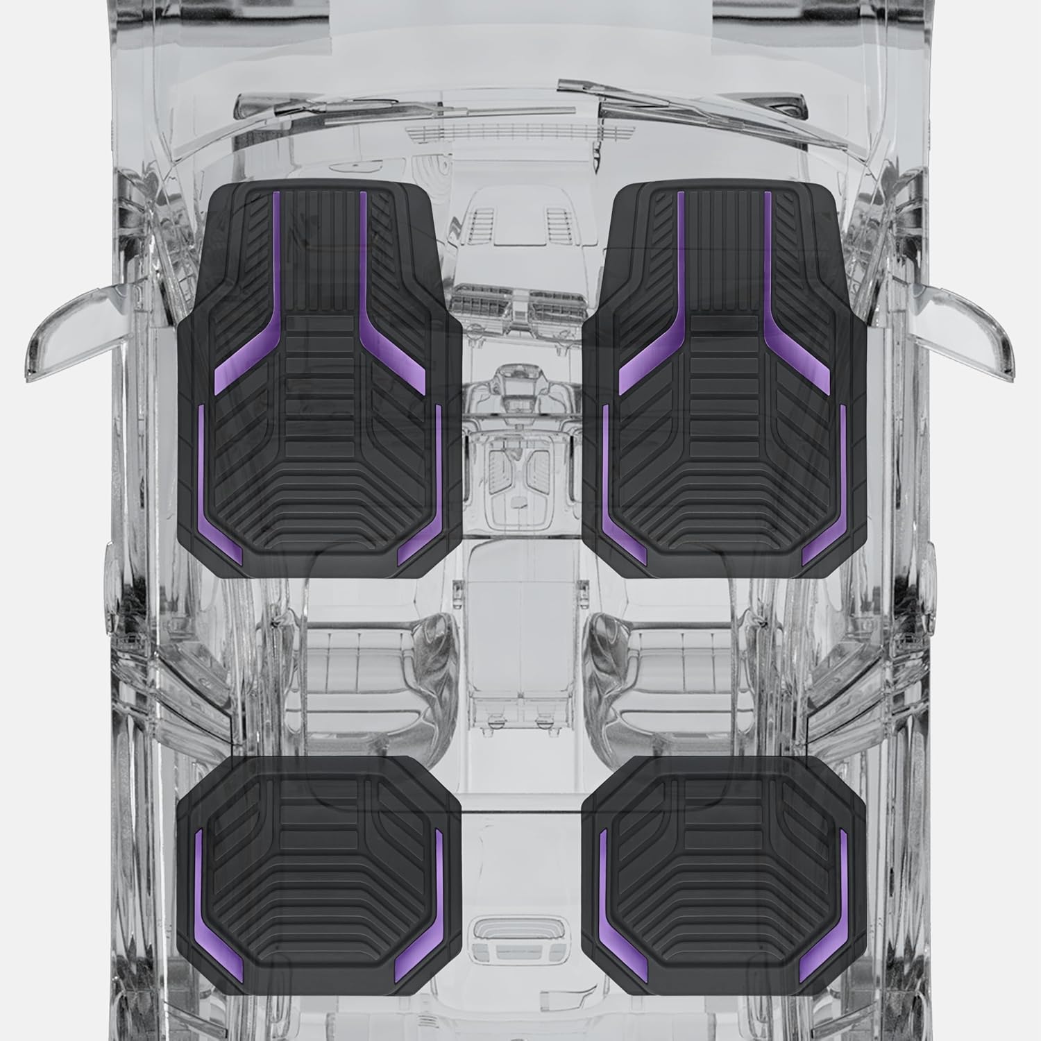 PIC AUTO Heavy Duty Rubber Floor Mats, Purple Aluminum Film Car Mats Set, Front and Rear Car Mats with Anti-Slip Backing, All Weather Protection, Trim-to-Fit for Automotive SUV, Sedan, Van