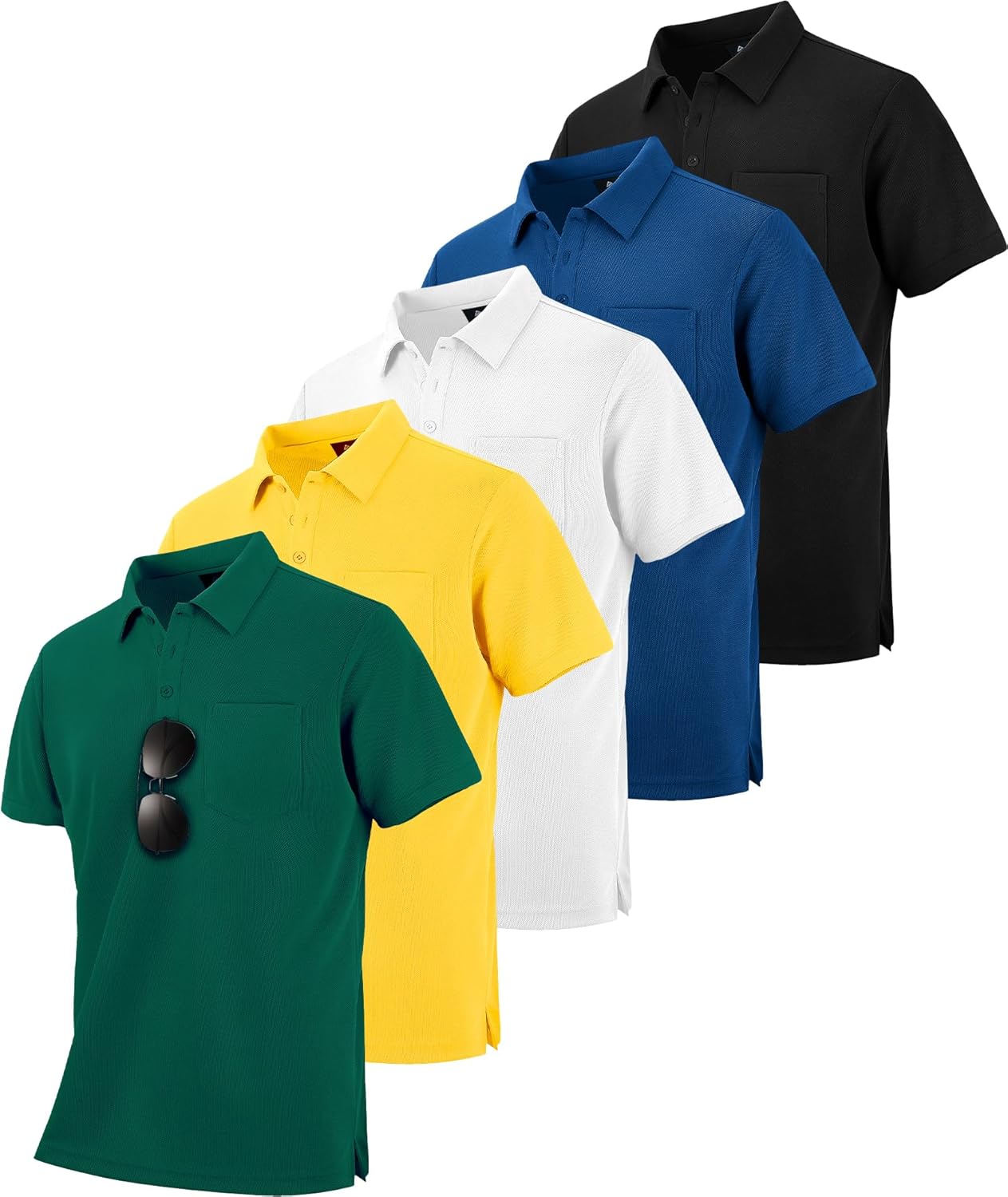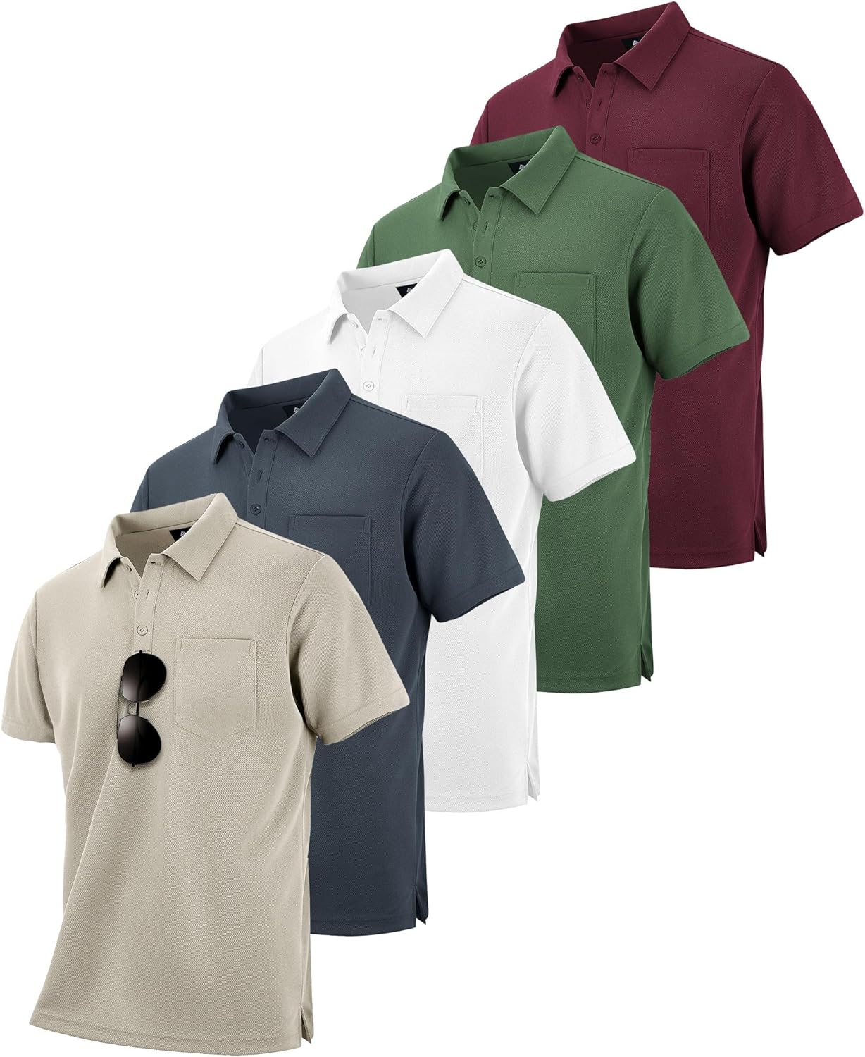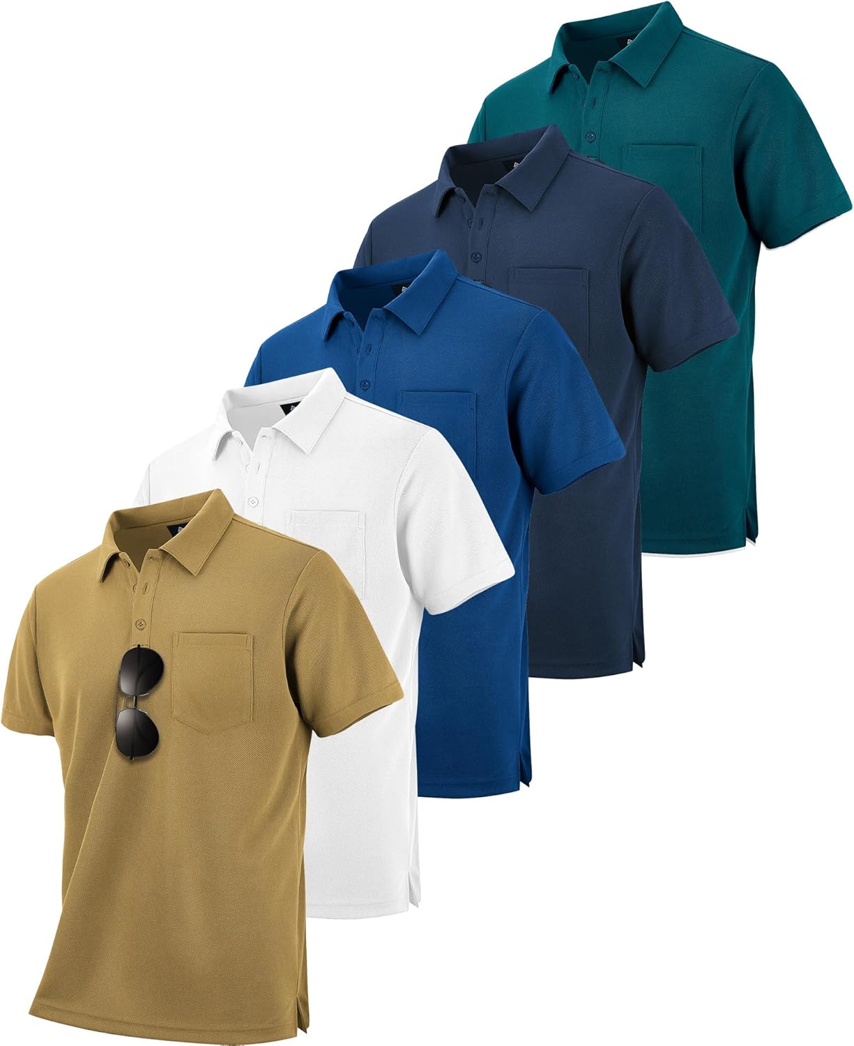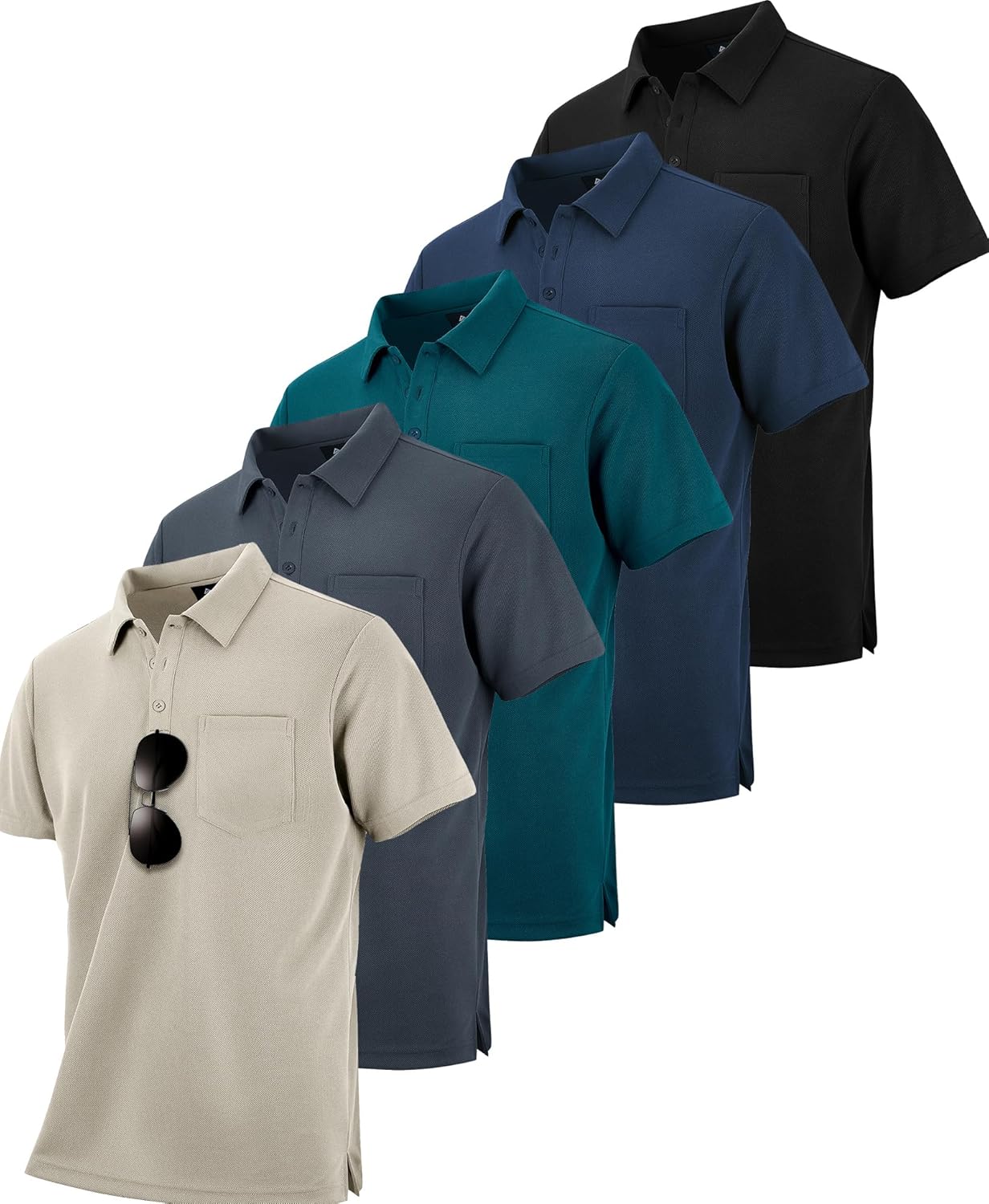 ZITY 5 Pack Polo Shirts for Men with Pocket Dry Quickly Short Sleeve Athletic Outdoor Work Collared Shirts