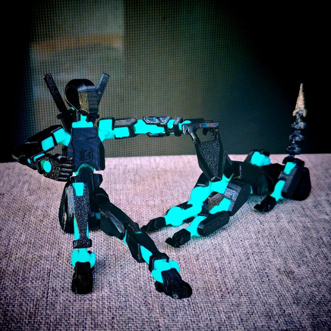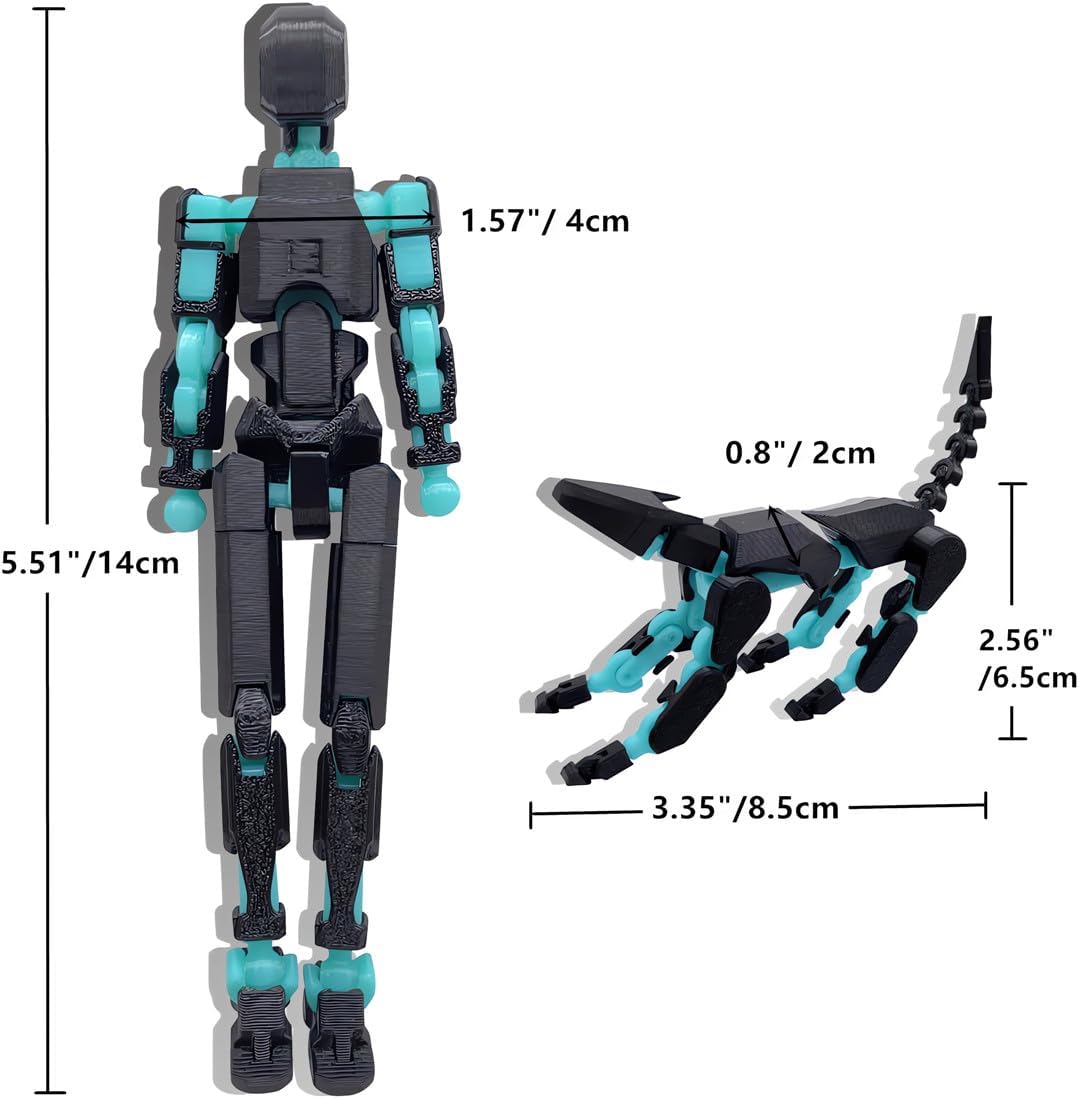 masijssa T13 3D Action Figures Set Titan 13 Action Figure Dummy 3D Printed Robo Multi-Jointed Movable Toy with Full Articulation for Collectors Desktop (Assembly Completed Black Blue Figure + Dog)