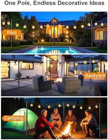 4 Pack String Light Poles for Outside, Thickened Metal Christmas Lights Hanger Pole Outdoor with Fork, Lighting Hanging Post Accessories for Patio Decor Garden Backyard Yard Outside Decorations