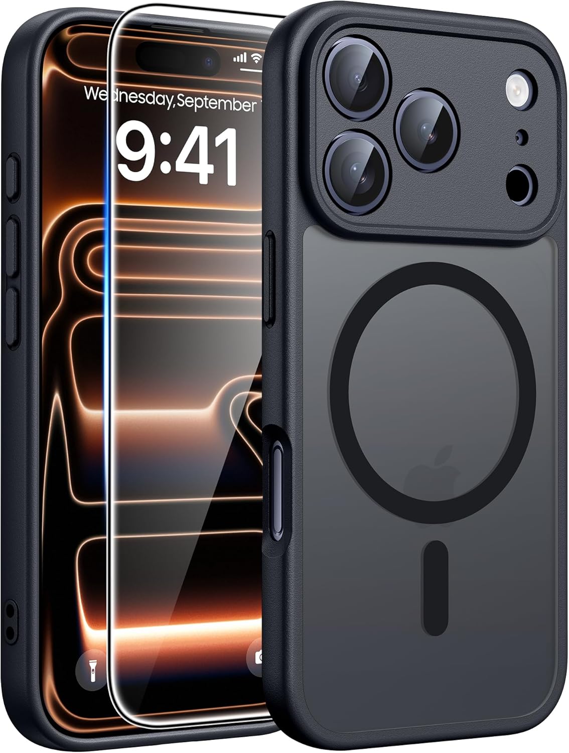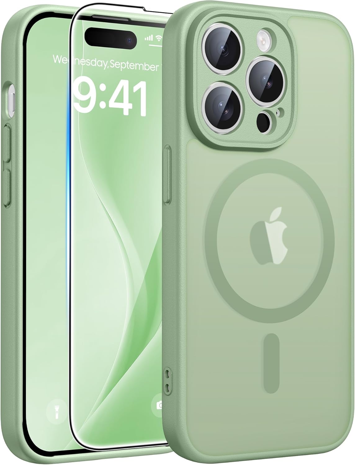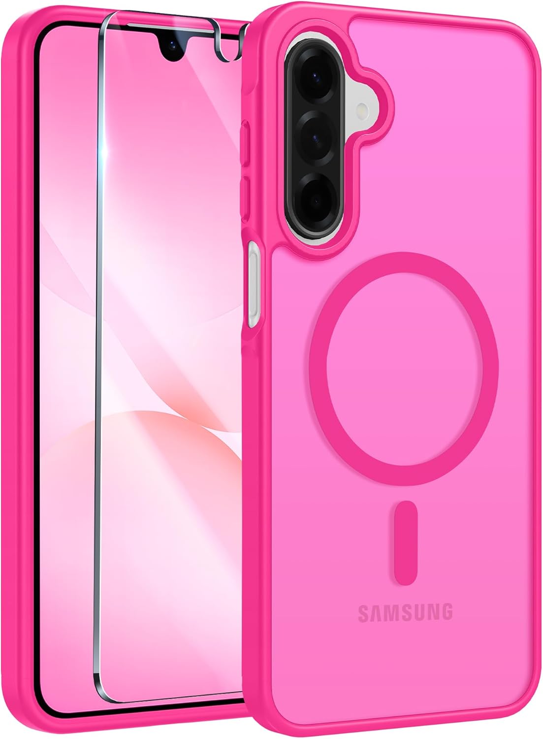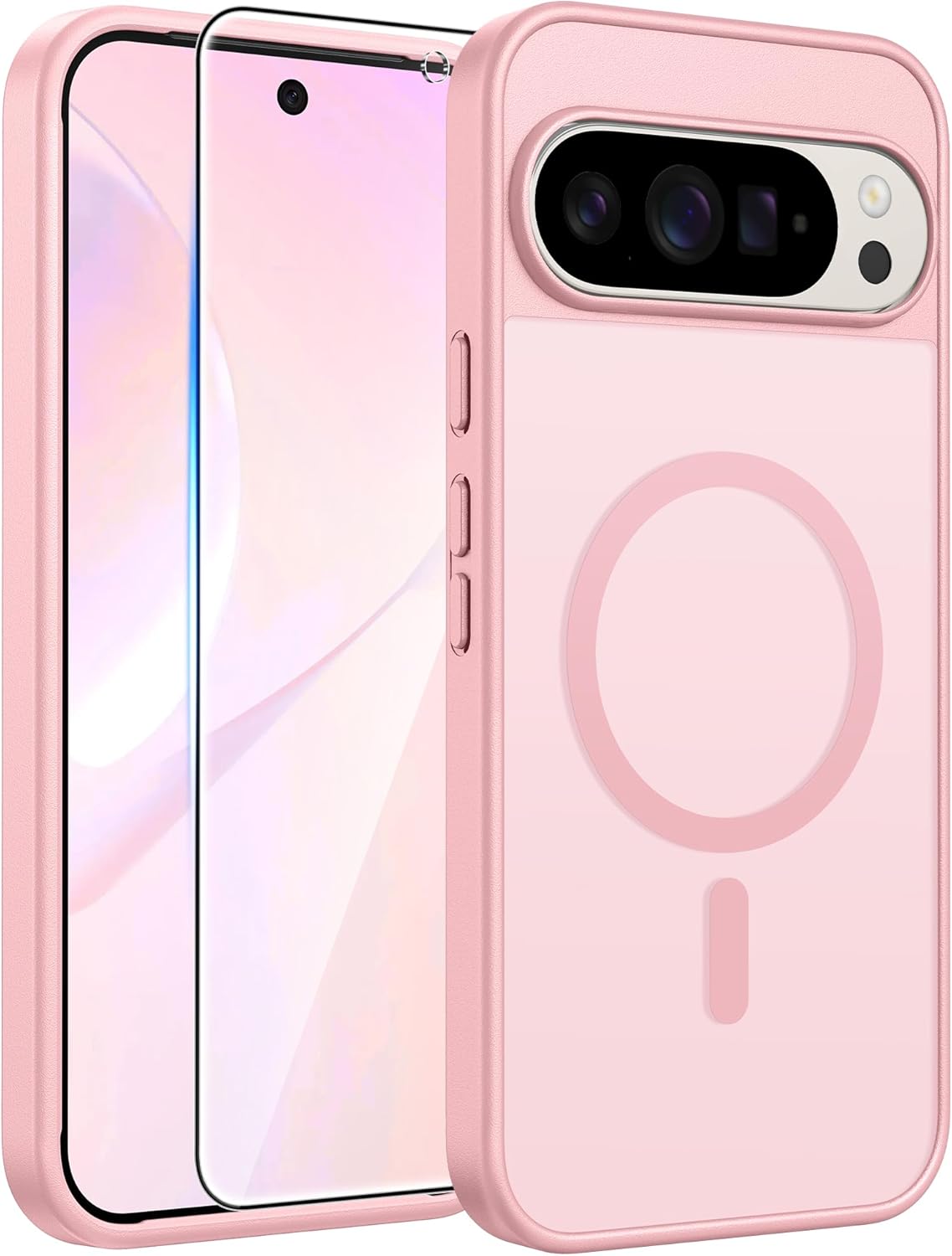 FNTCASE for iPhone 15 Case: for iPhone 14 Case & iPhone 13 Case [Compatible with Magsafe] Translucent Matte Magnetic Phone Cover - Military Grade Drop Protection Shockproof Protective Cases - Pink