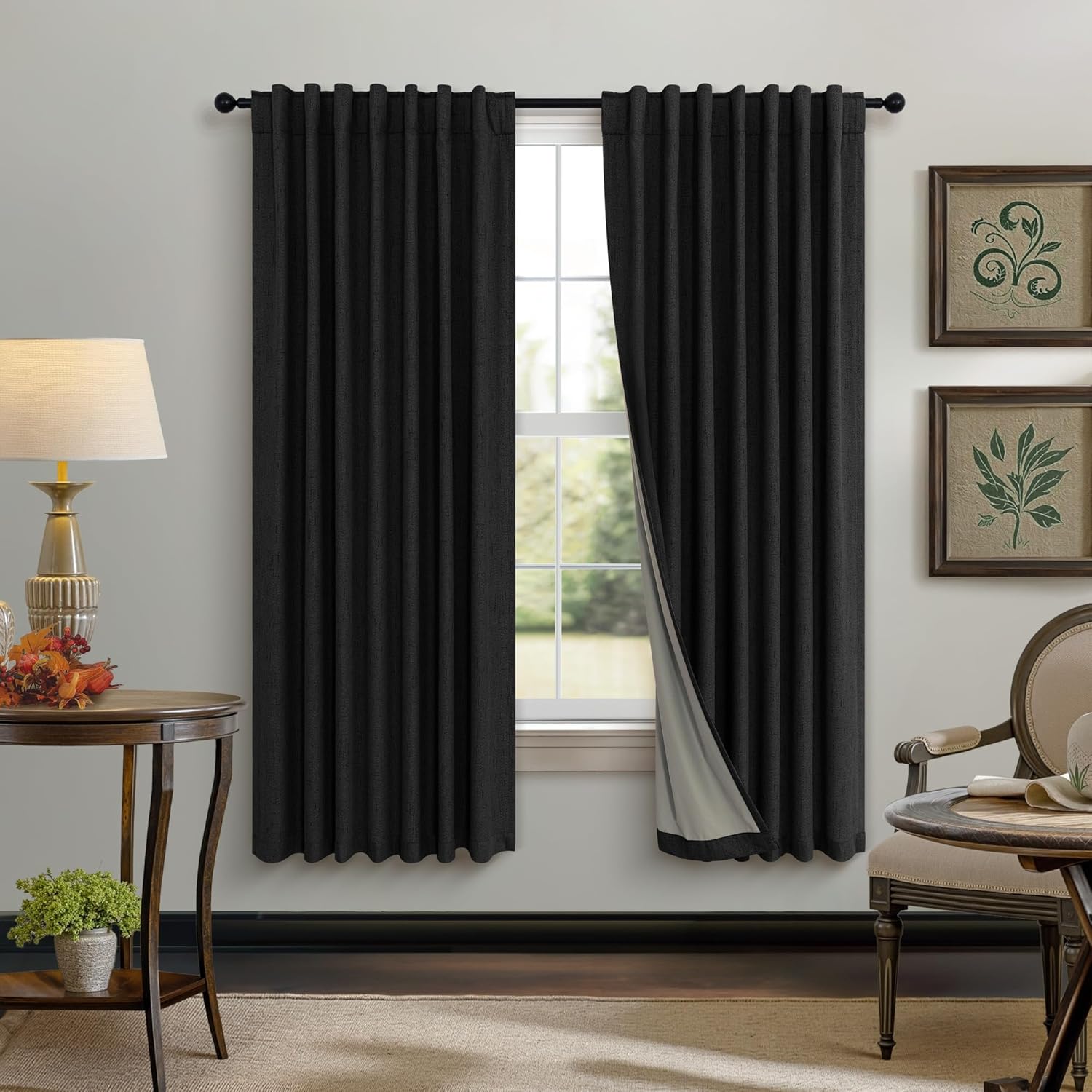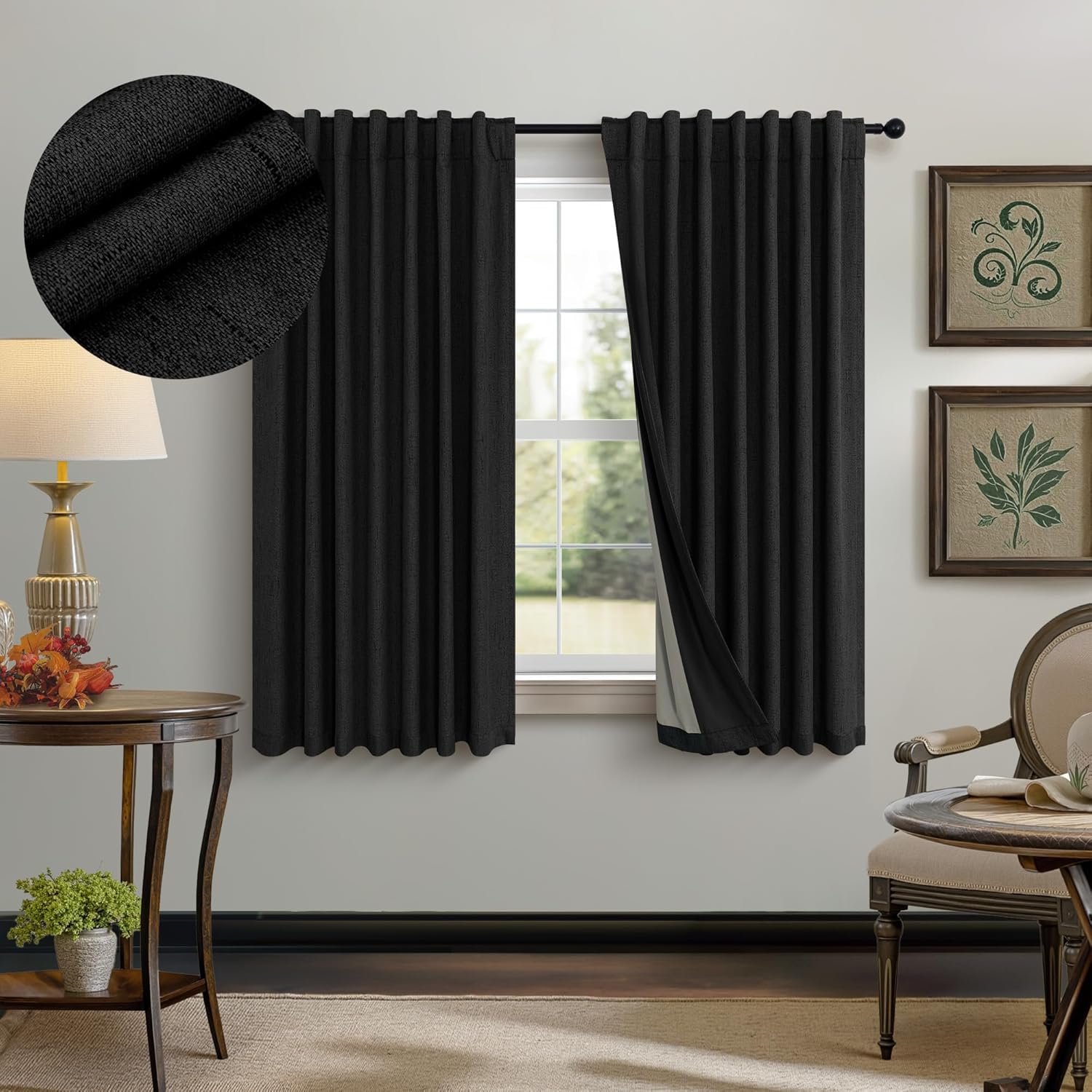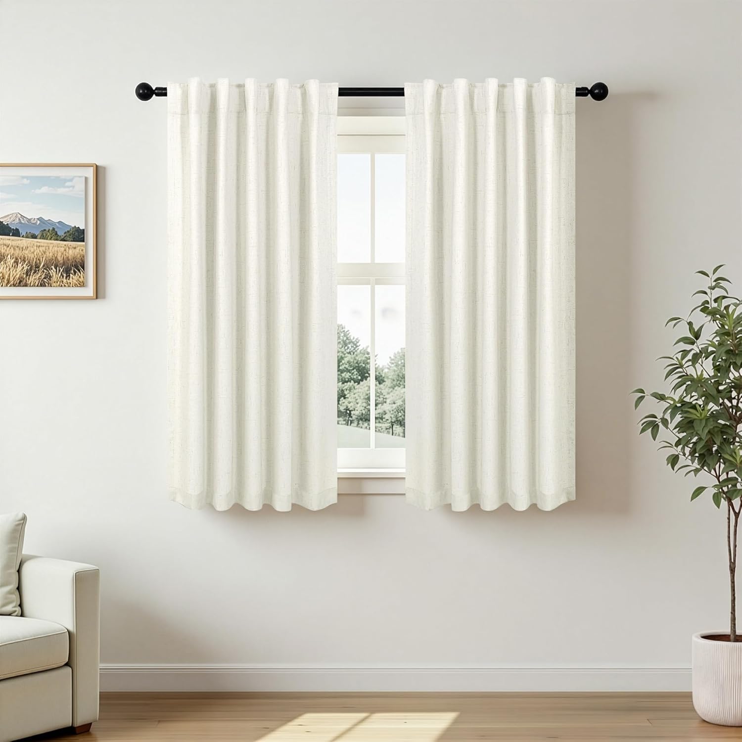 100% Blackout Curtains 84 Inch Length 2 Panels Set Neutral Boho Linen Farmhouse for Bedroom Windows Living Room Darkening Thermal Insulated Drapes Natural Cream Ivory 7ft Long Back Tab Pleated Pocket