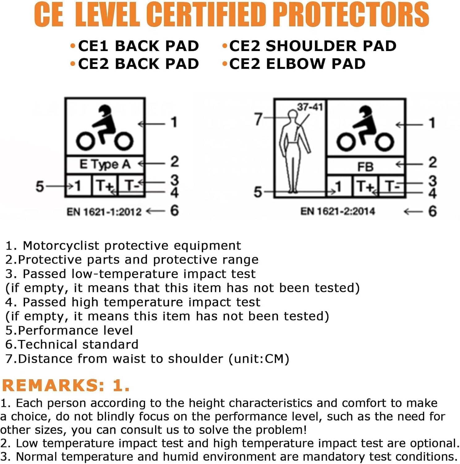 PSLER Full CE Level 2 Certified Motorcycle Armor Back Pad, Elbow and Shoulder Protection Pads Set for Motorcycle Jackets, 5PCS