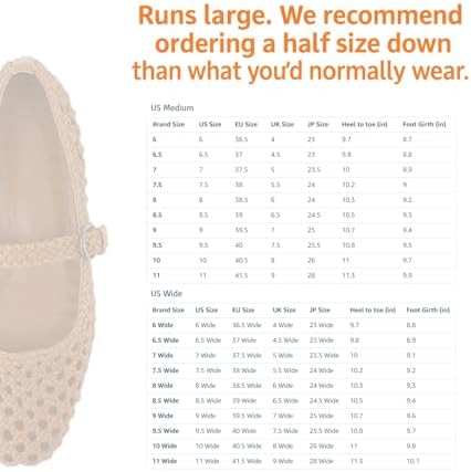 ???????? ?????? - Crafted from hand-woven vegan leather, these mary jane flats feature a structured yet flexible open-weave design for breathability and lasting shape ?????? ??? - A braided ankle strap with adjustable buckle offers a personalized feel and everyday elegance in these mary janes for women ?????? ???? ??????? - Soft memory-foam cushioning adapts to your foot for superior support and comfort through long workdays and weekends ??????? ??????????? - Lightweight and timeless, these dressy ballet flats complement jeans, skirts, or office wear with effortless grace ????????? ??? ????? - Runs large; we recommend ordering a half size down for the best fit and comfort in these flats for women