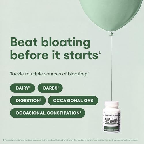 Physician's CHOICE Bloat & Gas Probiotic 5-in-1 Proactive Support + Daily Relief - Digestion & Gut Health- Herbals, Digestive Enzymes, Post & Prebiotics - Gas Relief for Adults - Women & Men - 30ct
