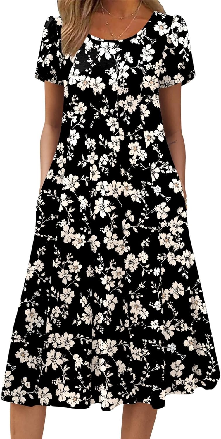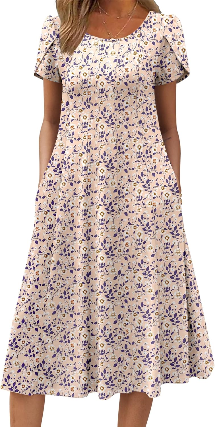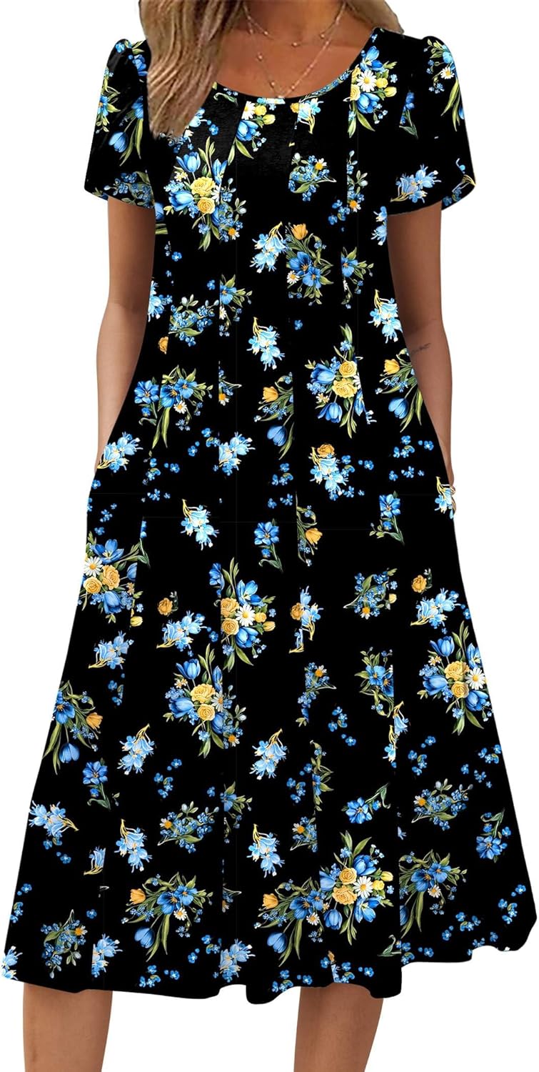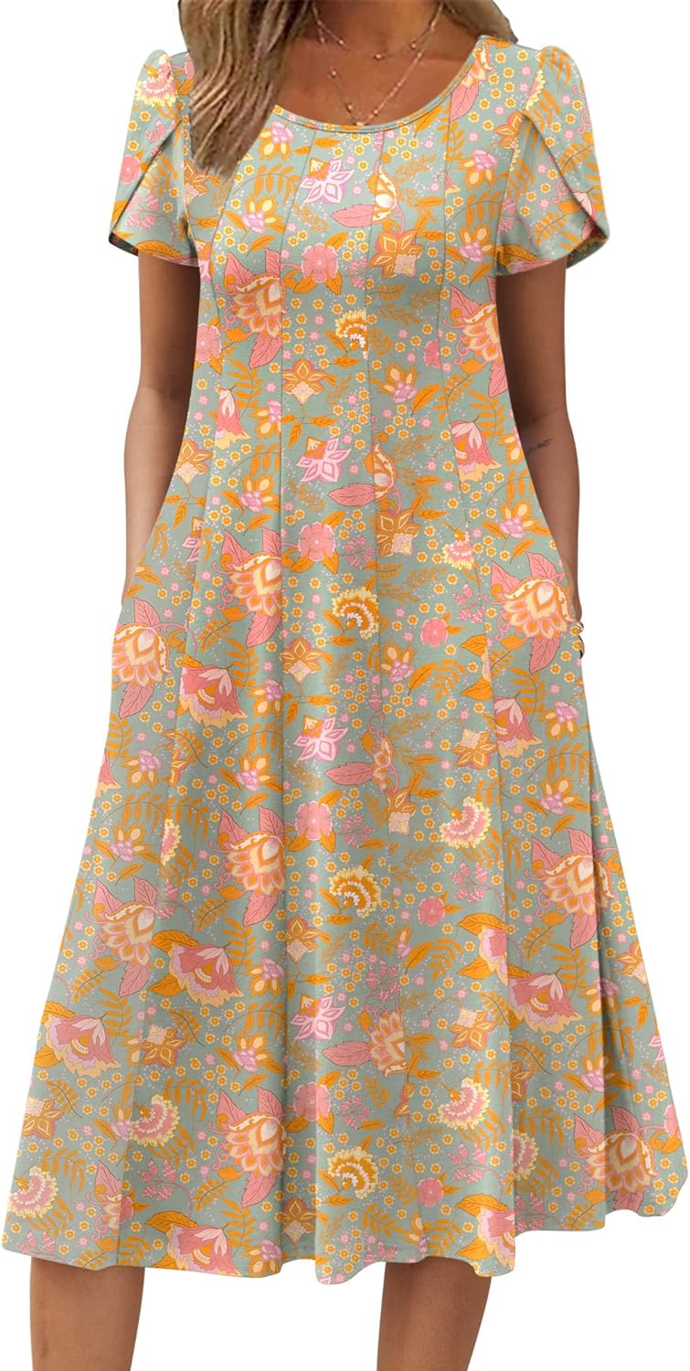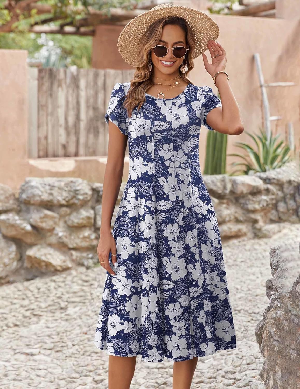 ZEAGOO Womens Casual Dresses for Summer Short Sleeve Flare Midi Dress Loose Flowy Beach Sundress