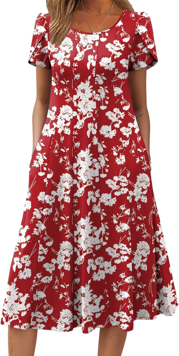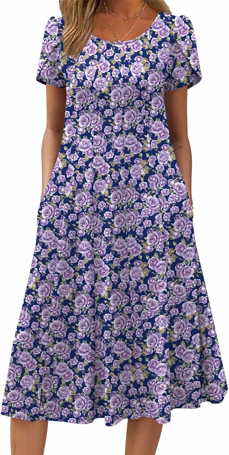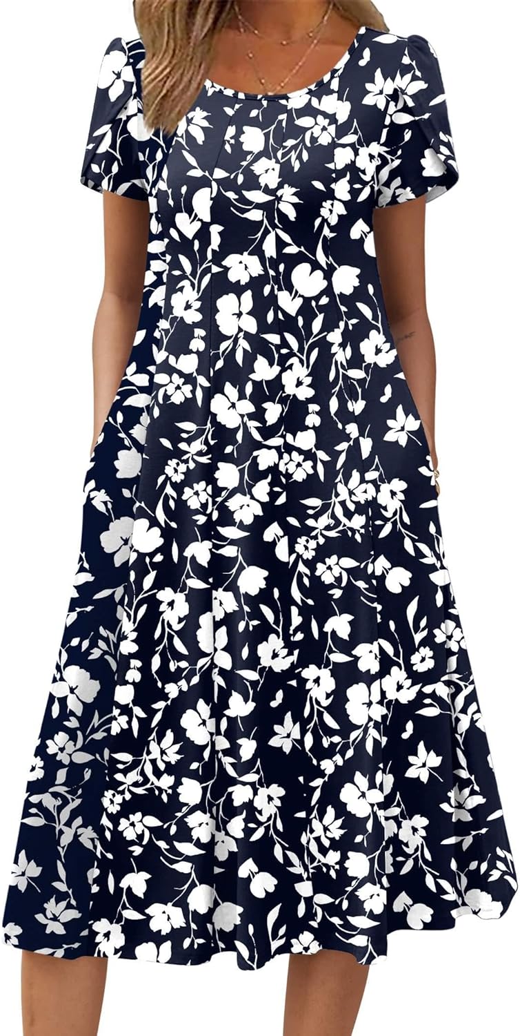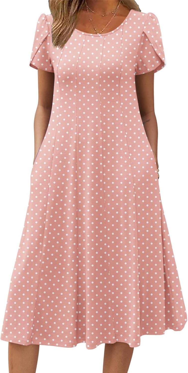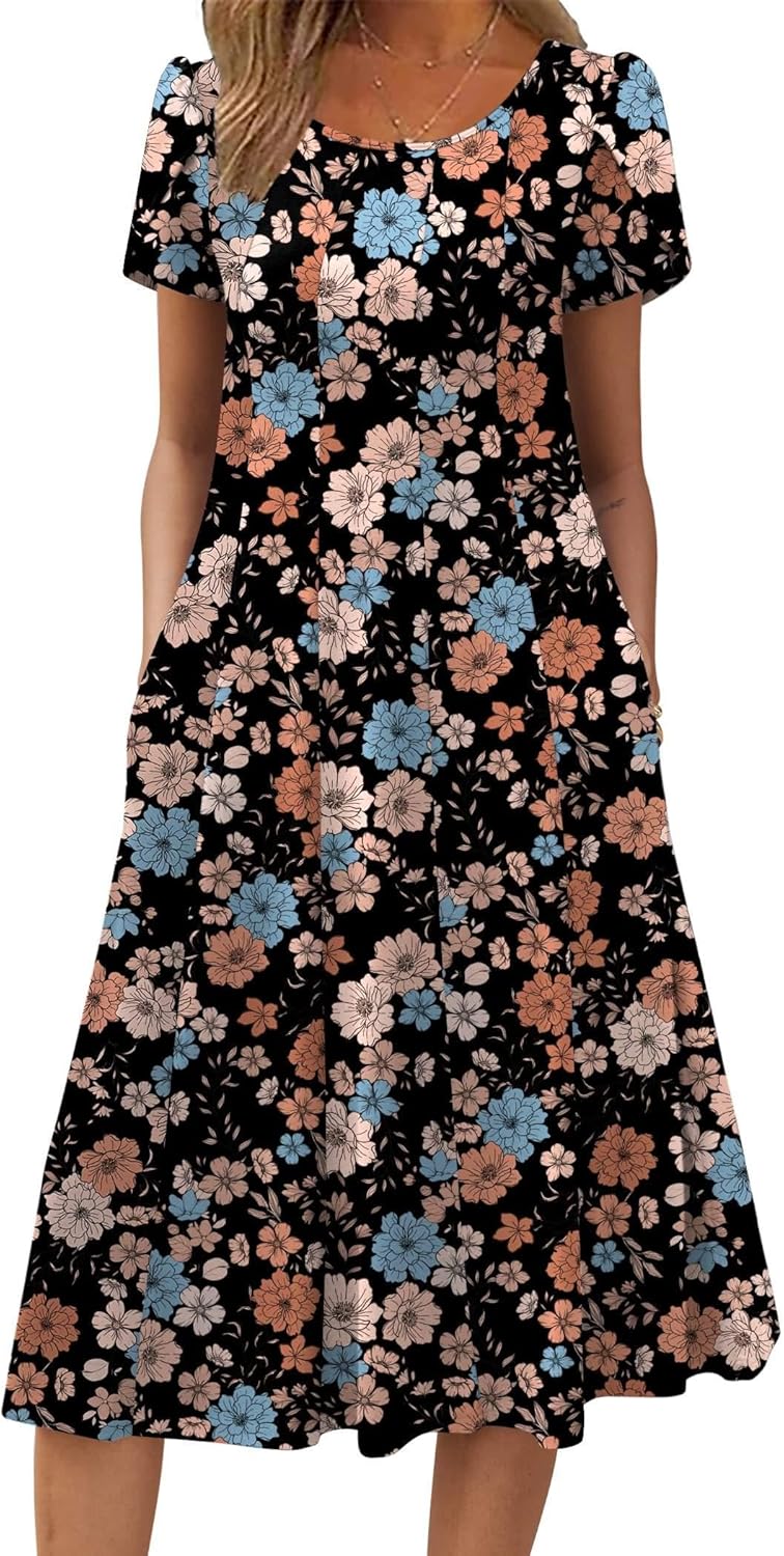 ZEAGOO Womens Casual Dresses for Summer Short Sleeve Flare Midi Dress Loose Flowy Beach Sundress