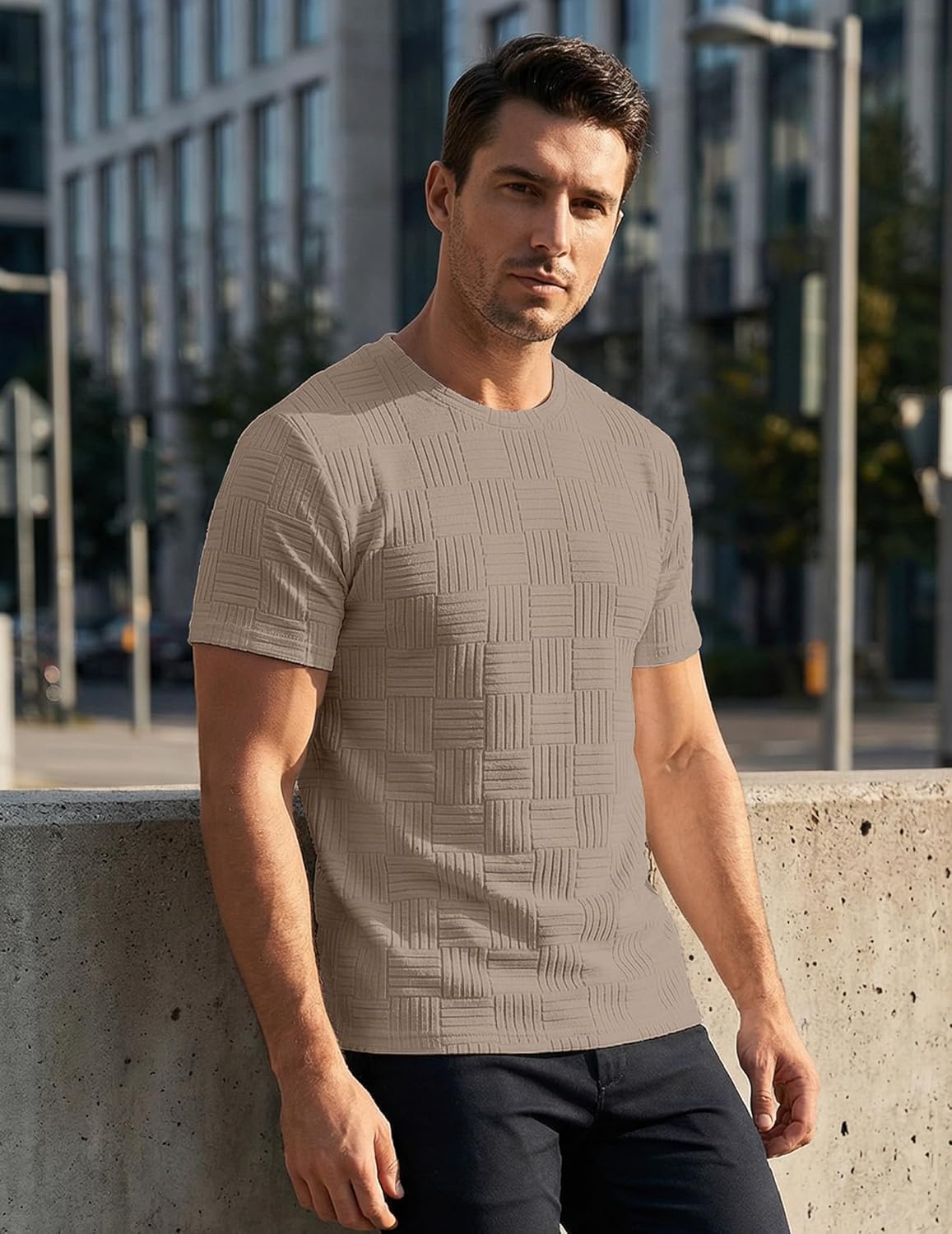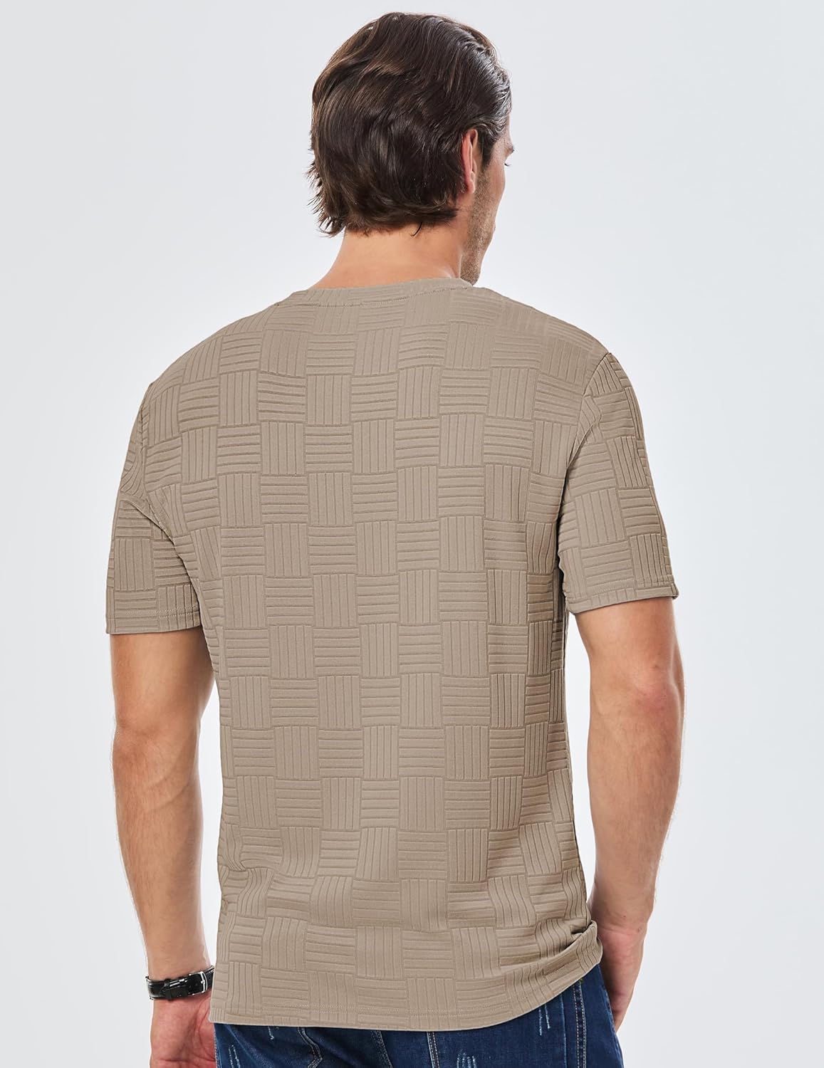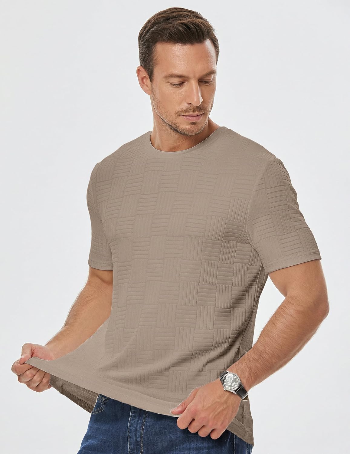 JMIERR Mens T-Shirt Casual Stretch Solid Crewneck Short Sleeve Tees Textured Shirts