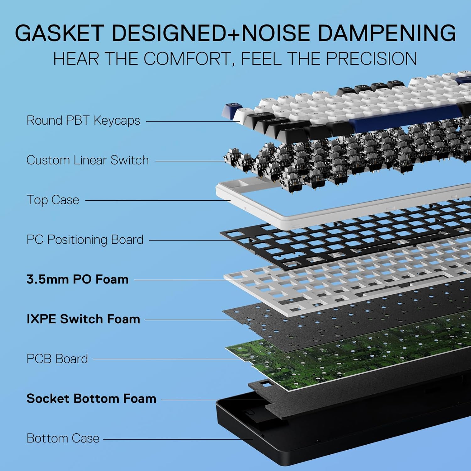 Redragon K689 Wired Gasket RGB Gaming Keyboard, 108 Keys Mechanical Keyboard w\/Extra 4 Hotkeys, Upgraded Hot-swappable Socket, 3-Layer Noise Dampening, Mixed Color Keycaps, Custom Linear Switch