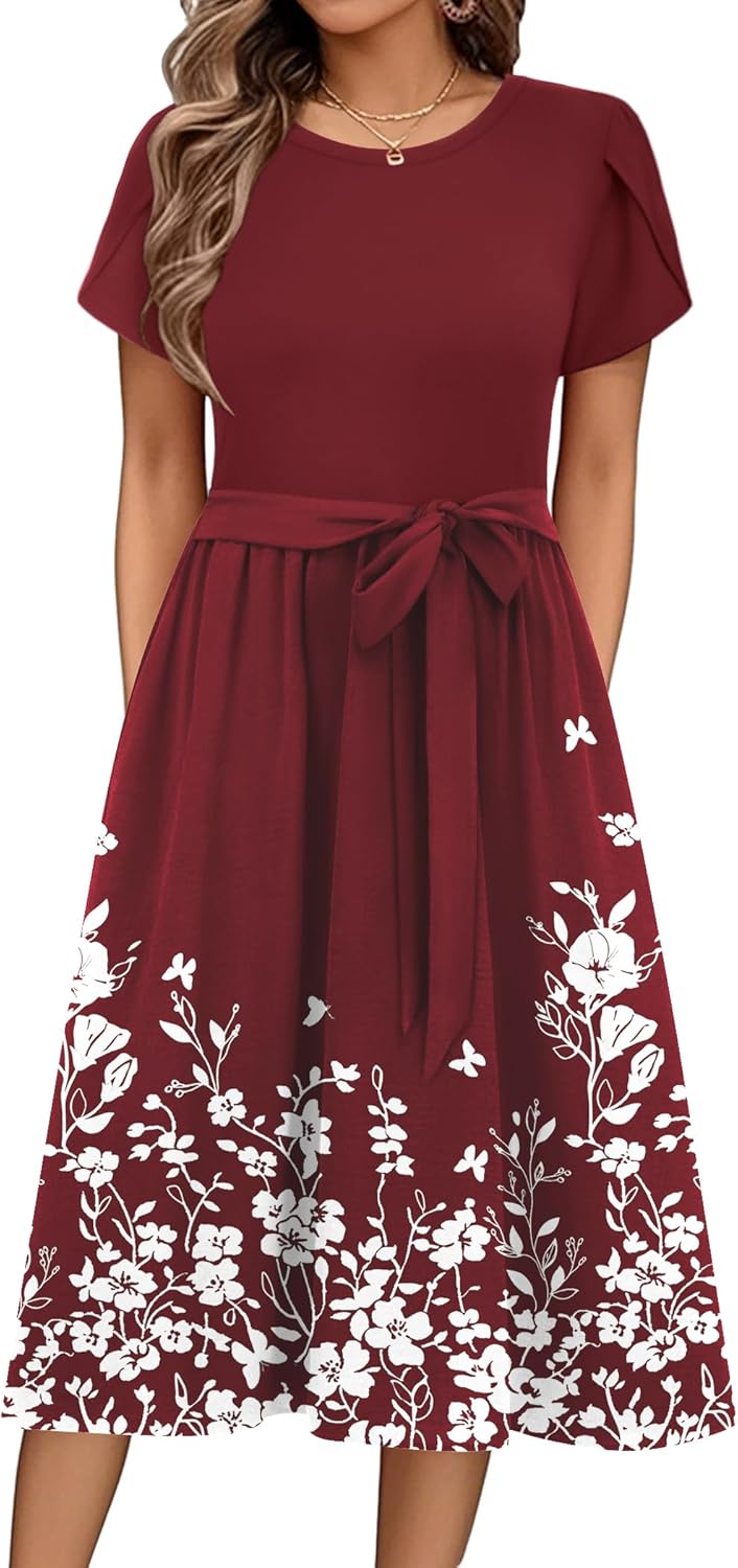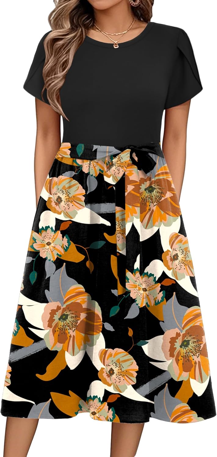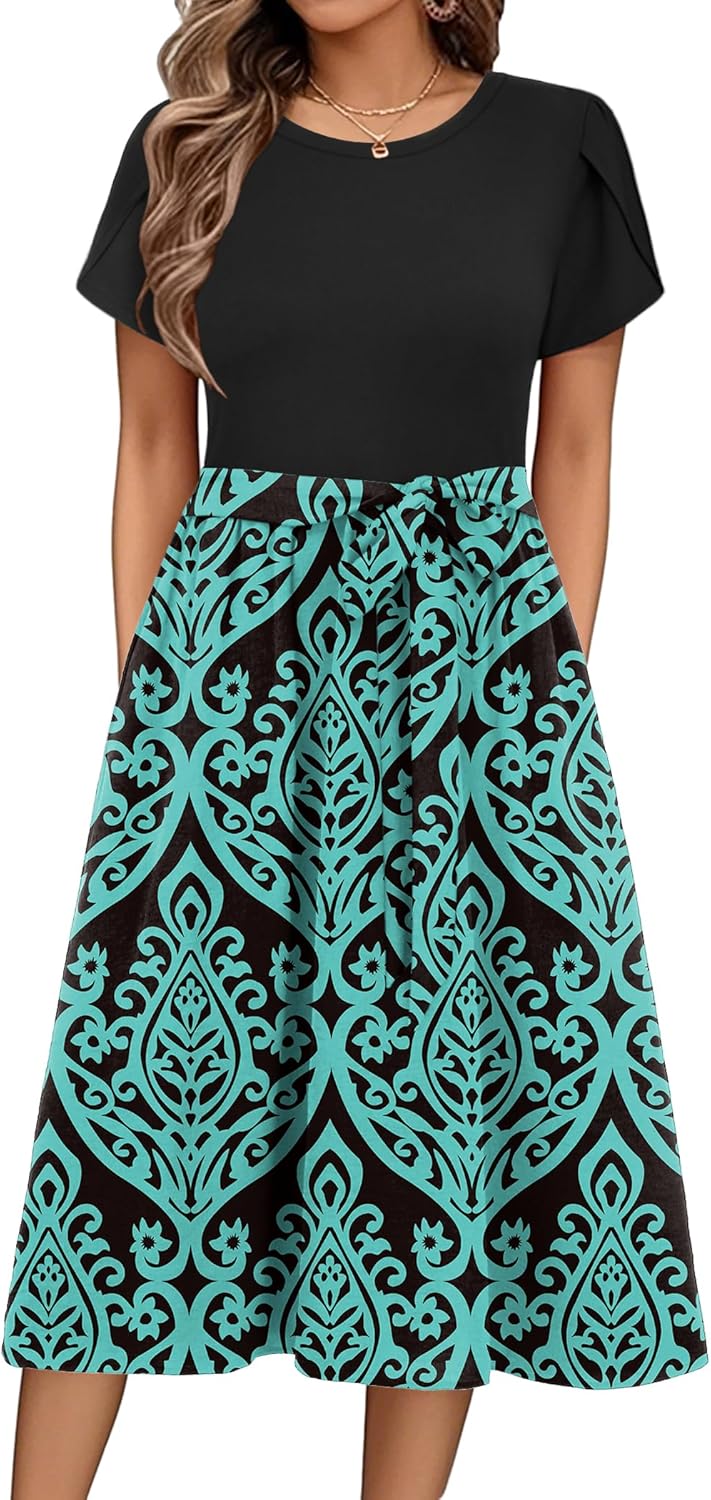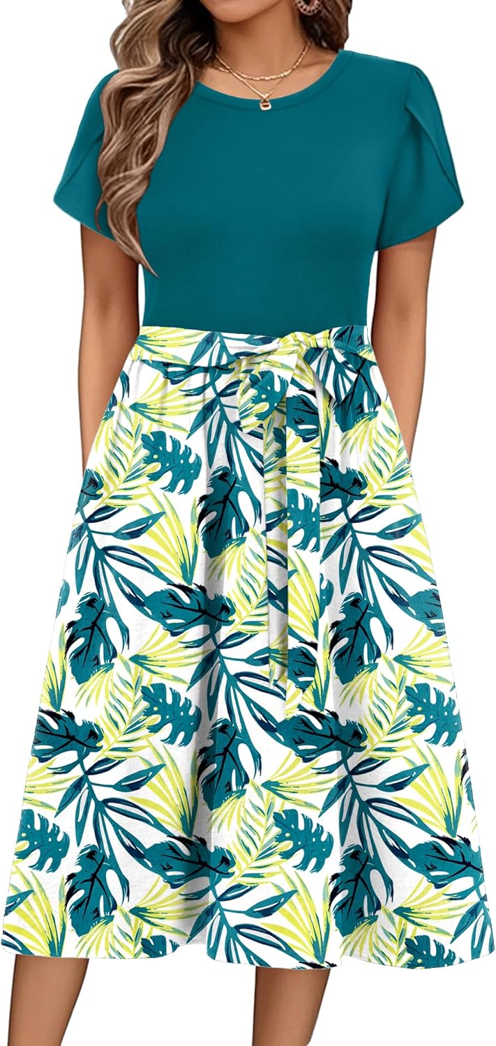 Zeagoo Womens Midi Dress Summer Short Sleeve Dress with Pockets 2025 Casual Floral T-Shirt Dress Flowy Beach Sundress