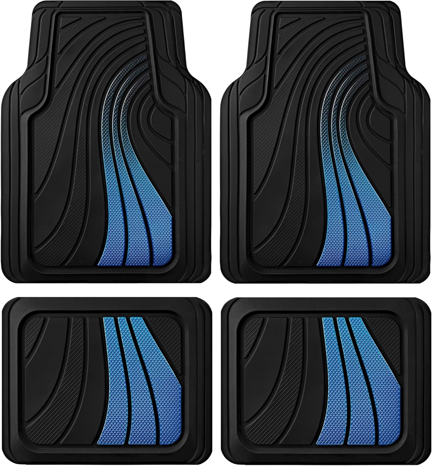 Road Comforts Car Floor Mats Full Set \u2013 Front & Rear Car Floor Mats with Aluminum Design, Anti-Slip Backing, All-Weather Protection, Trim-to-Fit Car Mats for Most Sedans, SUVs & Vans - Gl