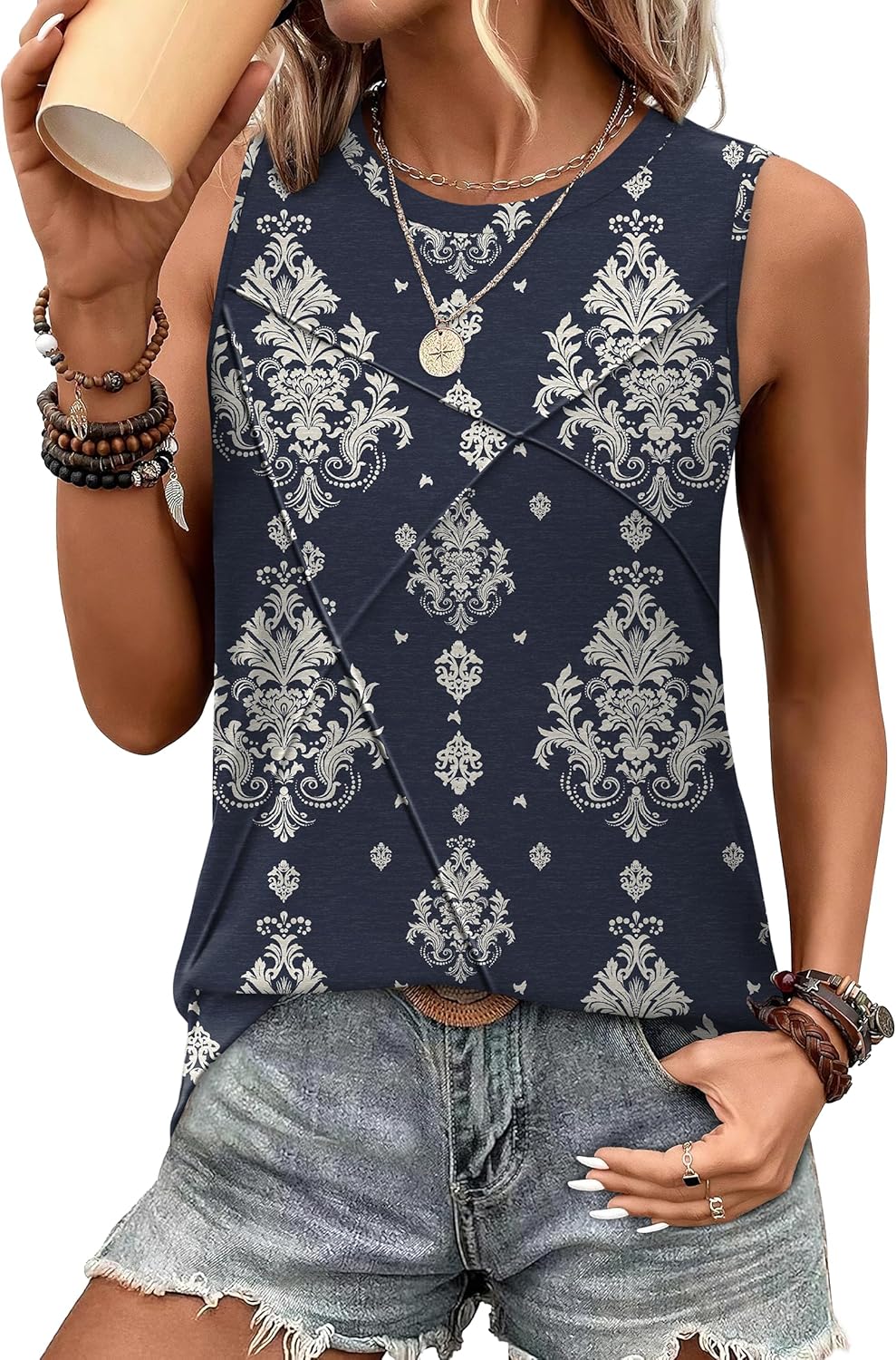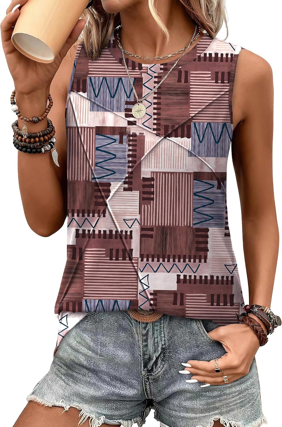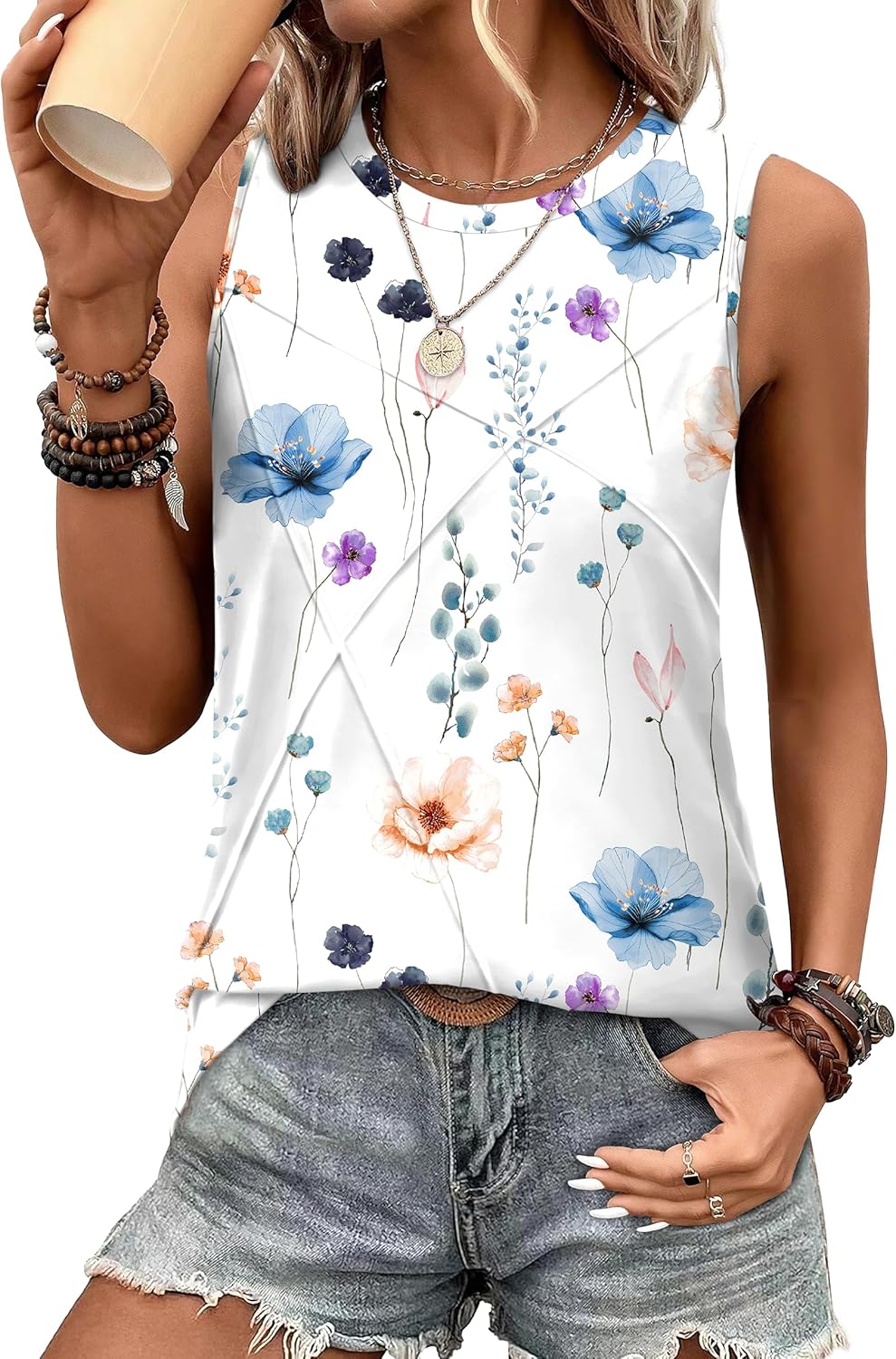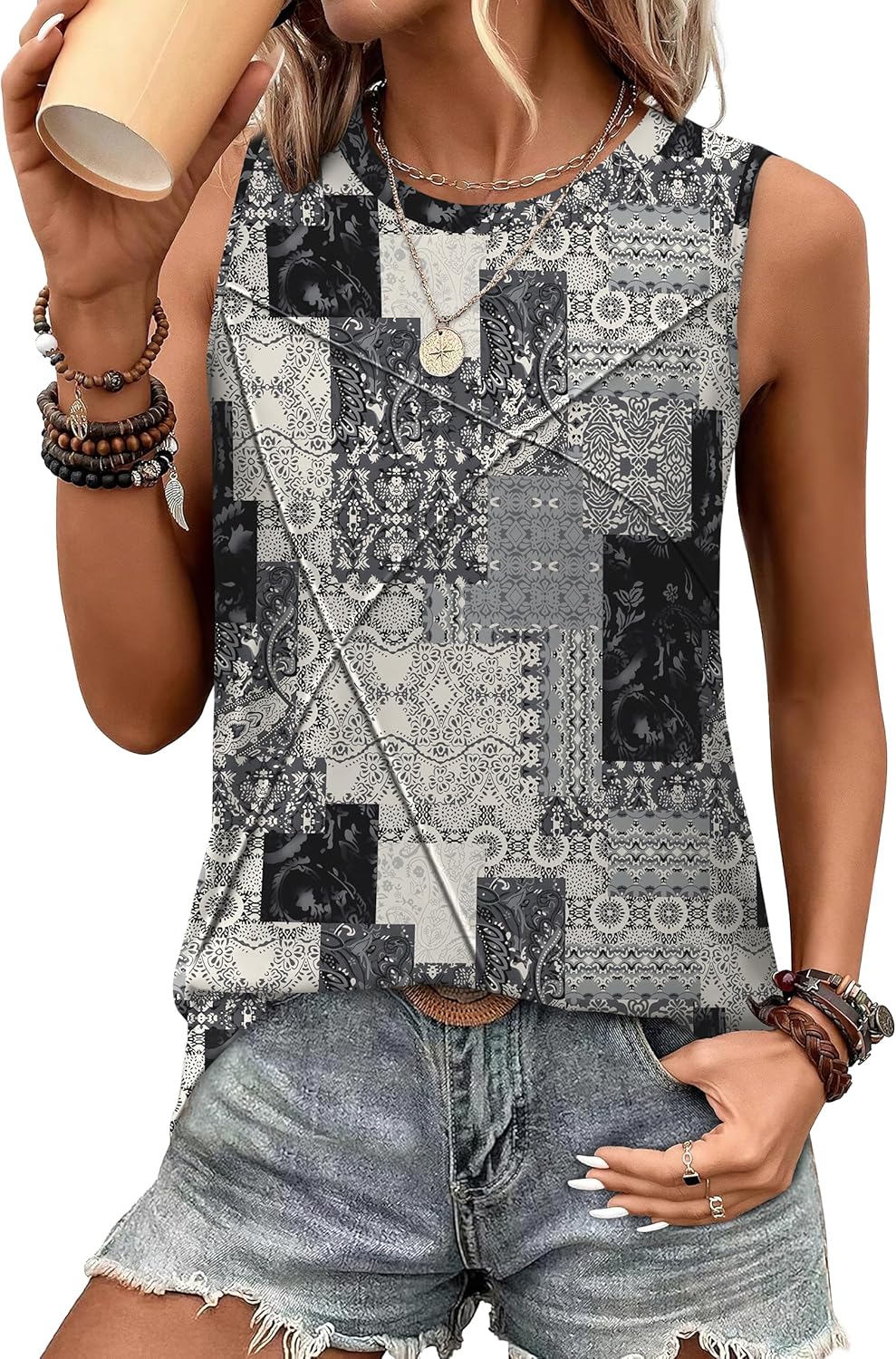 WIHOLL Women's Sleeveless Summer Crewneck Loose Fit Tank Tops