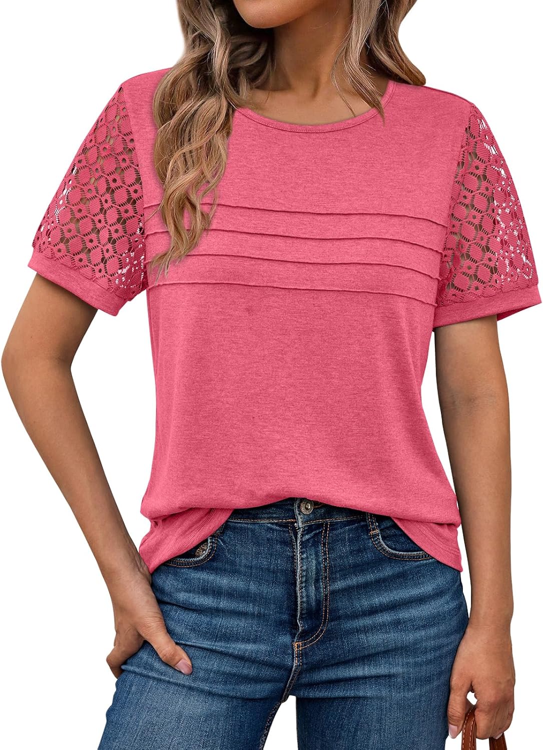 AUTOMET Women's Short Sleeve Shirts Dressy Lace Summer Tops 2026 Spring Trendy Casual T-Shirts Cute Work Outfits Blouses
