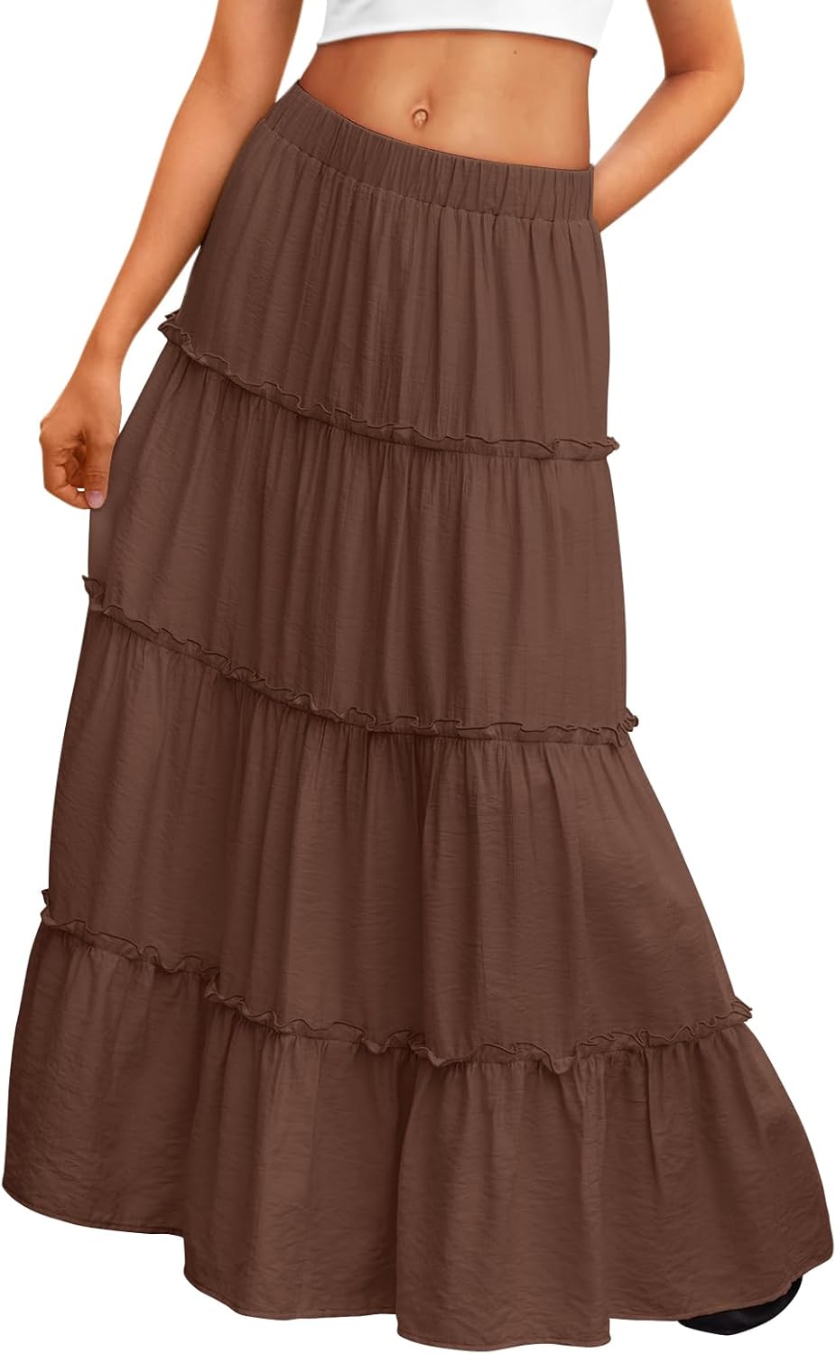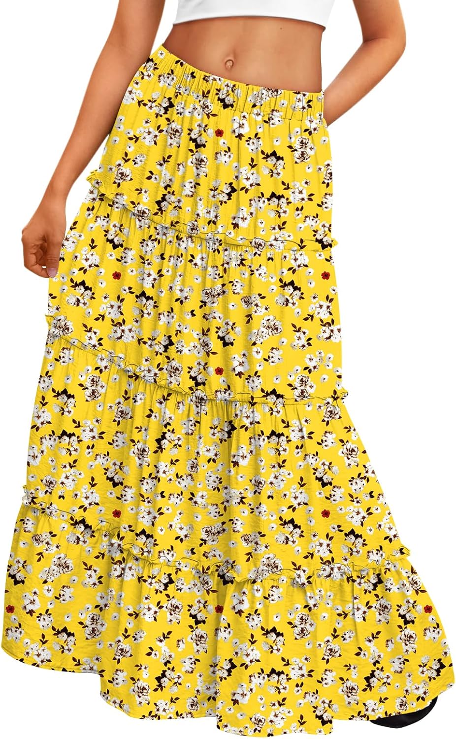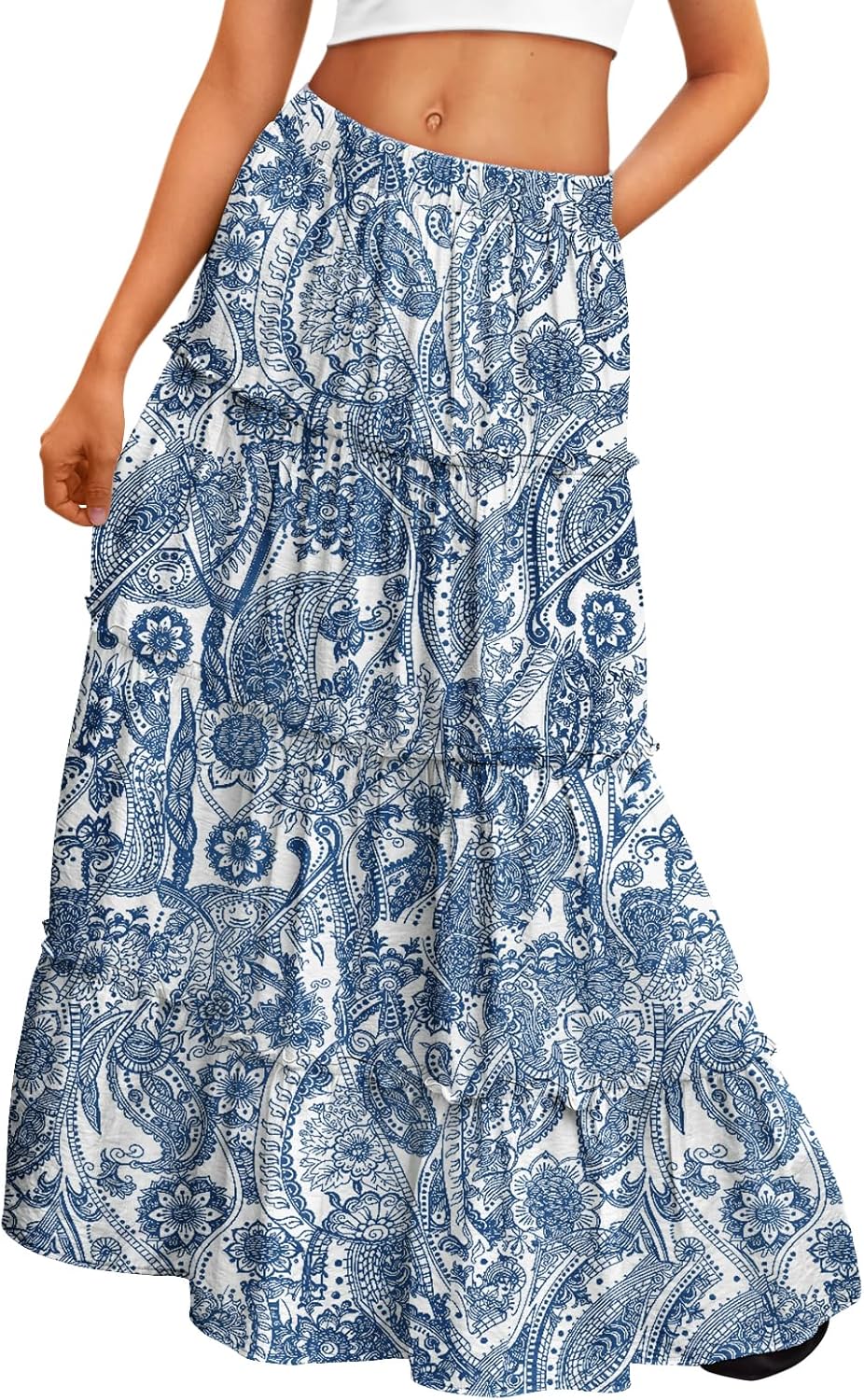 Trendy Queen Vacation Outfits Long Skirts for Women Boho Maxi Skirt Elastic High Waist Dress with Pockets Fashion