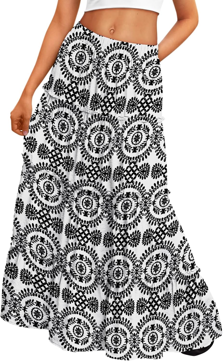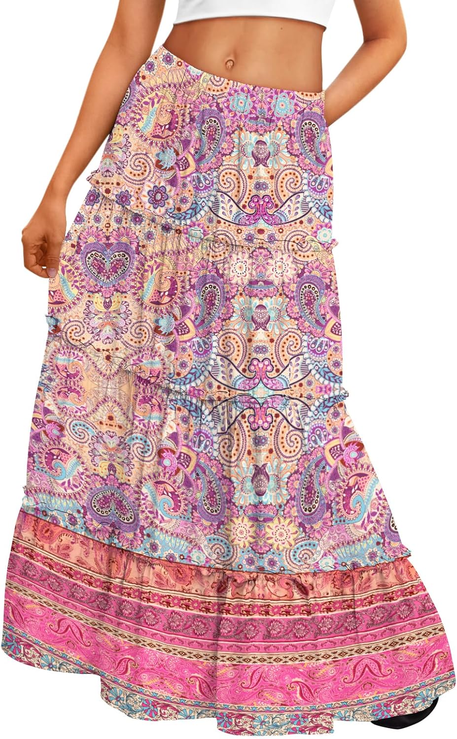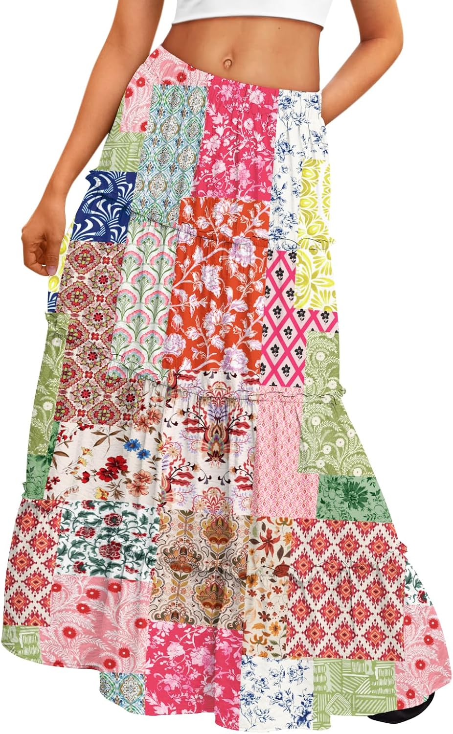 Trendy Queen Vacation Outfits Long Skirts for Women Boho Maxi Skirt Elastic High Waist Dress with Pockets Fashion