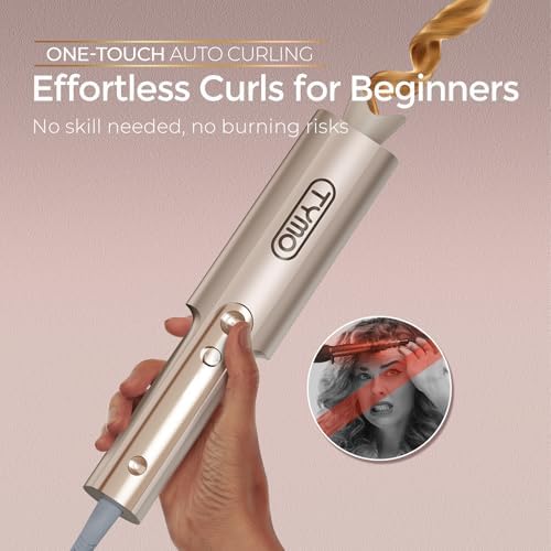 TYMO CurlPro Plus Automatic Rotating Curling Iron - Upgraded Long Barrel Curling Wand for Long Hair, Ceramic Hair Curler for Women, Anti-Scald, Tangle-Free, 600M Ionic, Dual Voltage, Gold, 1 Inch