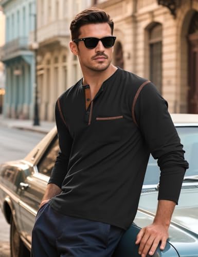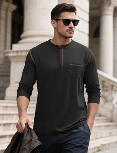 Material:QOSOQ Men's Henry Long Sleeve Fashion T-shirt made of soft and breathable material,durable and wear-resistant with moderate elasticity,fits more body shapes and provides warmth in cold times.It is a truly classic men's T-shirt Cut design:Men's casual shirt features a variety of design layers, with a traditional three button collar design, long sleeves, and Henry top.Combining solid colors with line elements,it is your first choice for creating a casual and exquisite appearance in autumn and winter seasons Occasion:Men's long sleeved pullovers have a casual style that is perfect for daily wear,dates,work,study,holiday gatherings,travel,streets,and more.It is the best gift choice for fathers, husbands, and sons during festivals Discover the versatility of our HENLEY SHIRTS FOR MEN SHORT SLEEVE, a must-have in any MENS HENLEY SHIRTS LONG SLEEVE collection. Its CLASSIC design and comfortable fabric make it an ideal choice for MEN SHIRTS CASUAL outings, blending seamlessly with your everyday wardrobe. Not:This men's fitted Henry T-shirt is machine washable.If you want a loose style,please choose a size one size larger than usual