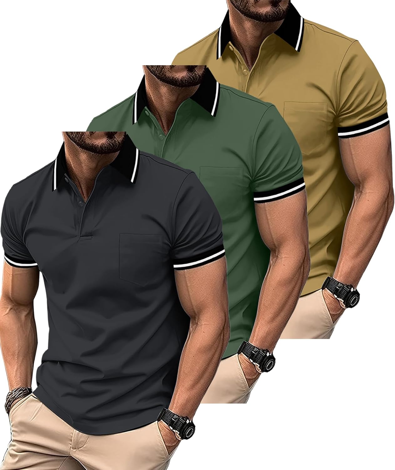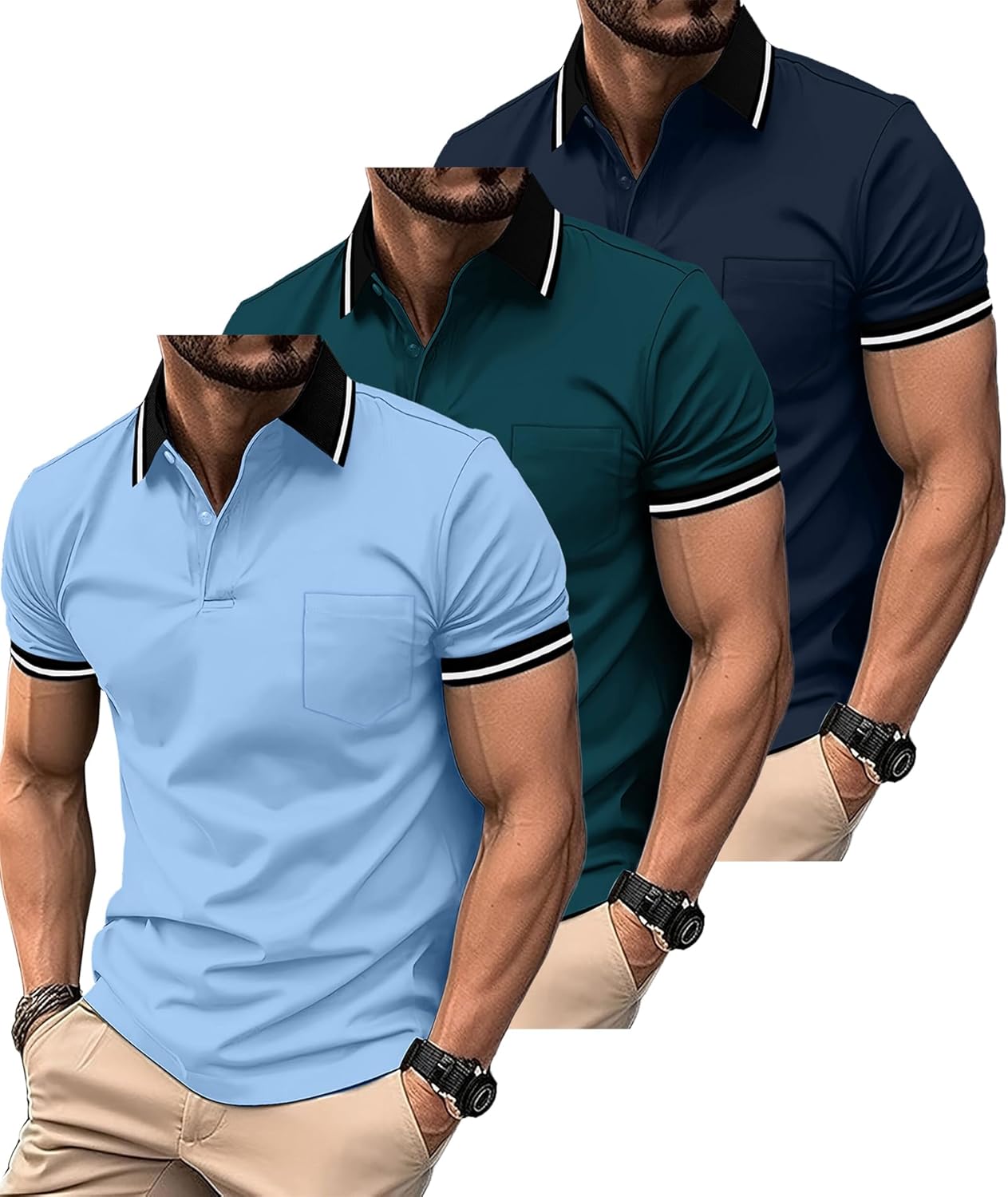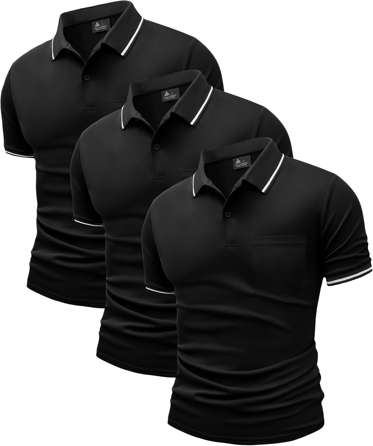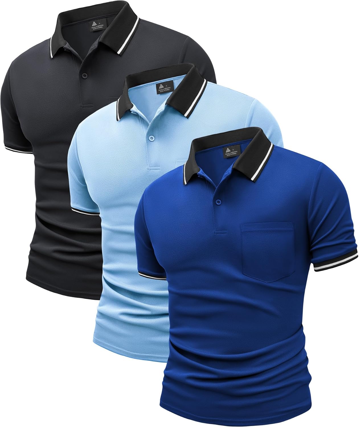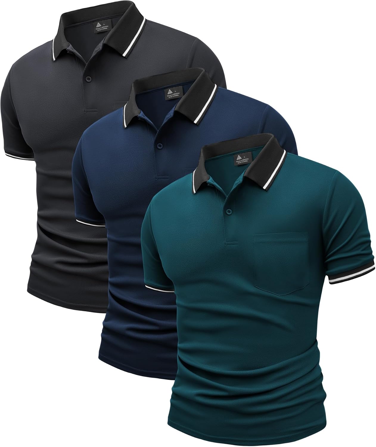 ZITY 3 Pack Men Polo Shirts Short Sleeve with Pocket Sport Wicking Shirts for Men Casual Athletic Collared T-Shirts