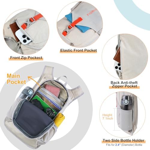 FIORETTO 15L Hiking Backpack for Women Men Mini Packable Backpack Lightweight Small Daypack for Camping Travel Outdoor, Beige