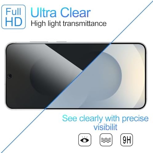 【Compatible with Samsung Galaxy s25】Include 2 Pack Tempered Glass Privacy Screen Protector for Galaxy S25【Support Finger Print Unlock】. Please check your phone model before purchase. 【Privacy Protection】 Privacy glass screen is only visible to person who is directly in front of Screen. Protect your personal privacy effectively. 【Case Friendly】Compatible with most mobile phone cases. 【Easy Installation】 A handy installation tray is provided for your easy quick installation, not easy to fall off, no bubbles. 【Superior Quality】9H hardness privacy screen protector resists accidental drops and impacts. Light transmittance of 99.9%, maintain original touch experience and HD screen.