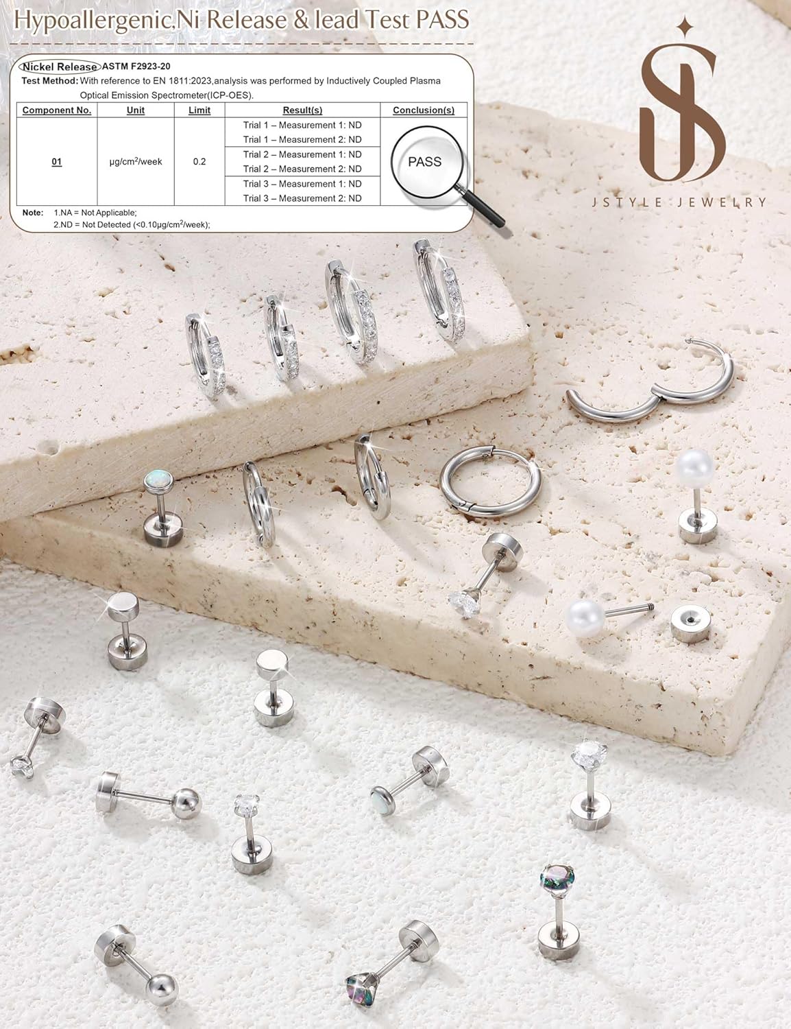 Jstyle Hypoallergenic Stud Hoop Earrings for Women Small Flat Back Surgical Stainless Steel Earrings for Sensitive Ears Trendy Silver Hoops Cartilage Earring Stacks Set Multiple Piercing Jewelry Gifts