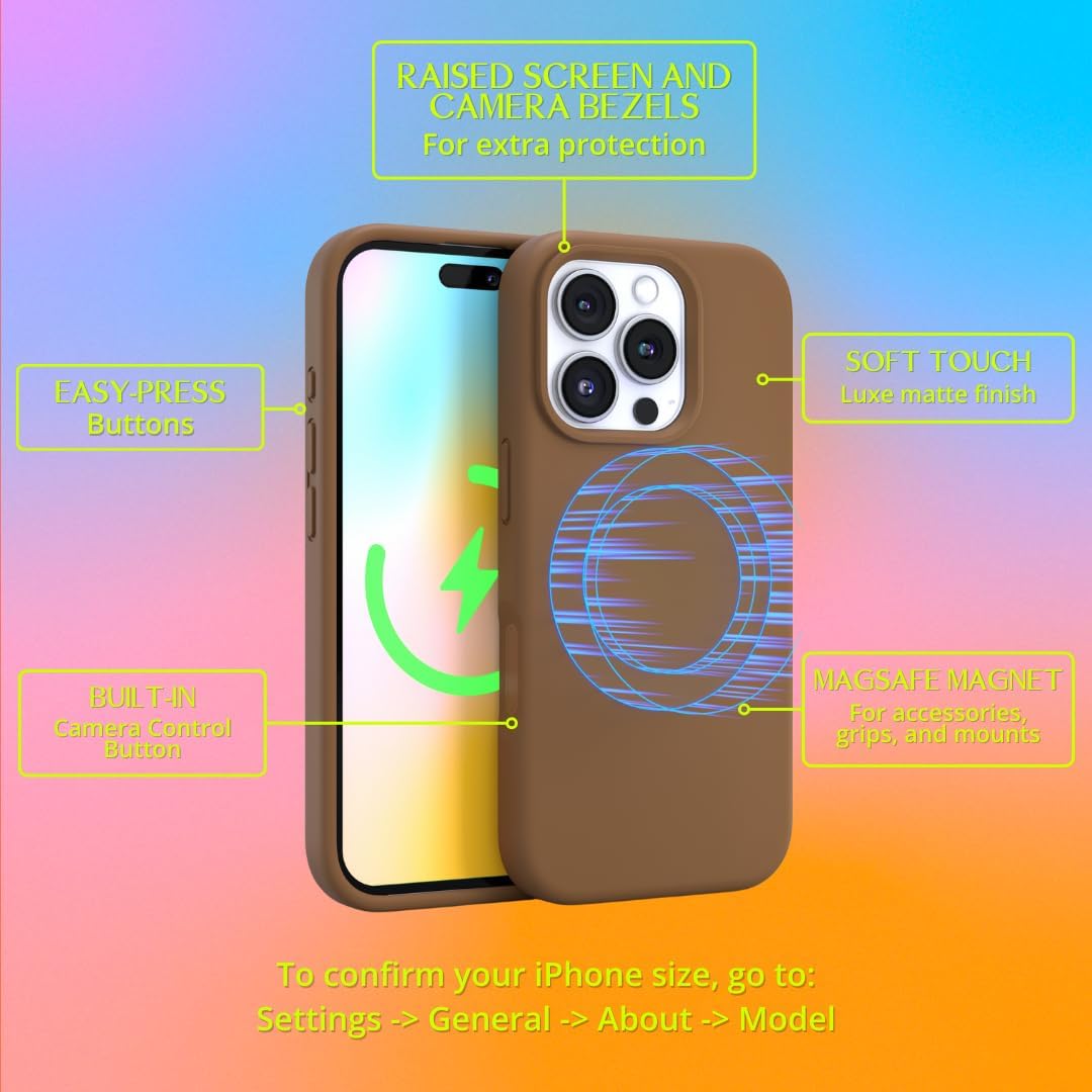 FELONY CASE for Apple iPhone 16 Pro Max - MagSafe Phone Case, Liquid Silicone, Neutral Color with Anti-Scratch Microfiber Lining, Non-Slip Grip & 360° Shockproof Protection (Saddle Brown)
