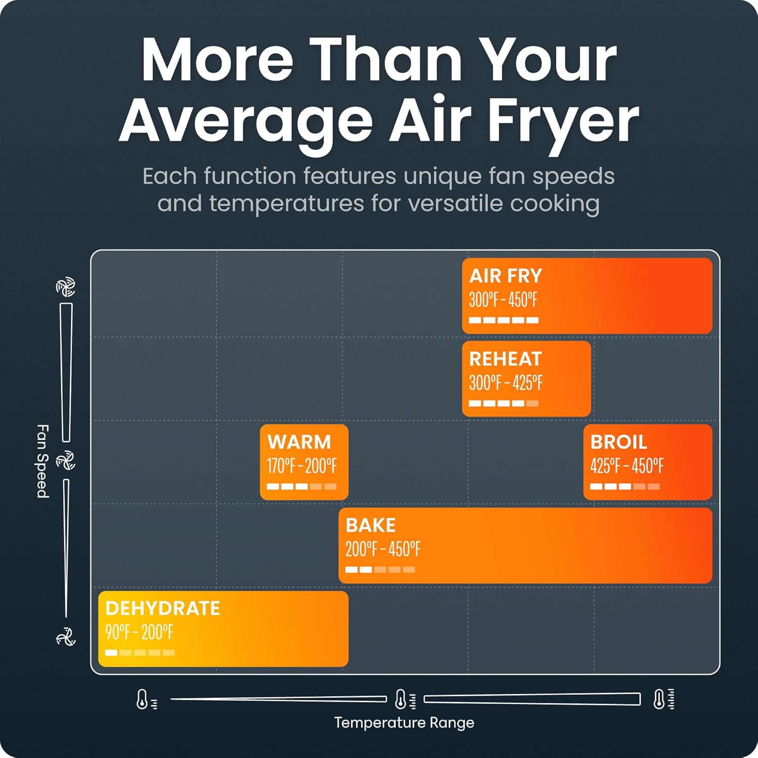 Chefman Crispinator Air Fryer 6-in-1 with 8 Qt capacity, 450°F Max Temp with TurboFry Pro Technology for Fast and Even Results, Viewing Window, Nonstick Ceramic Basket
