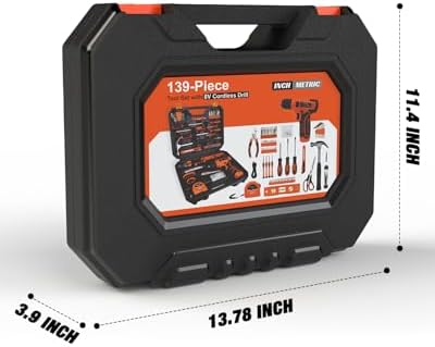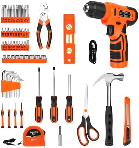 High-quality & Standards: The hand tools are manufactured from premium steel with heat-treated chromium surface treatment, delivering high strength to ensure durability and reliability. 8V Power Cordless Drill with LED: Featuring a compact, ergonomic design, this drill boasts a non-slip grip for secure handling. Its lightweight build enhances maneuverability, while adjustable speed settings (up to 800 RPM no-load speed) adapt to varied applications. The integrated LED light ensures visibility in low-light conditions. Rechargeable Battery: Equipped with a 1500mAh battery and a 1.5A USB charging cable, this power source seamlessly connects to standard chargers or USB ports (5V DC). Real-time charging status is indicated by rear-mounted LEDs, with a solid green signal confirming full charge. Durable & Easy to Carry Storage Case: The included rugged organizer features custom compartments for systematic tool arrangement and quick access. This layout maintains workspace efficiency while safeguarding equipment against damage during storage. Versatile Application: Suitable for various DIY projects and daily repairs, Whether you're a creative DIY enthusiast, a home user handling household maintenance, or a professional seeking efficiency, this tool set is your ideal choice. It empowers you to effortlessly tackle diverse tasks, from furniture assembly and appliance repairs to small woodworking projects.