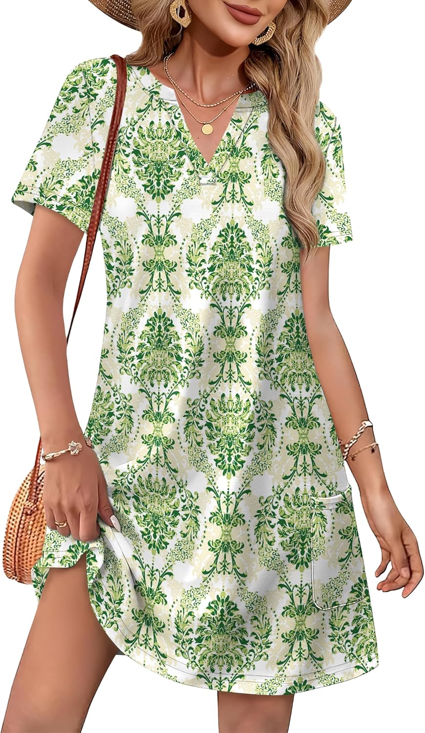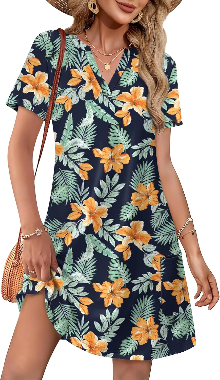 WIHOLL Summer Dresses for Women Casual V Neck Wedding Guest Dress Hawaiian Midi Dress Fashion Beach Vacation Clothes