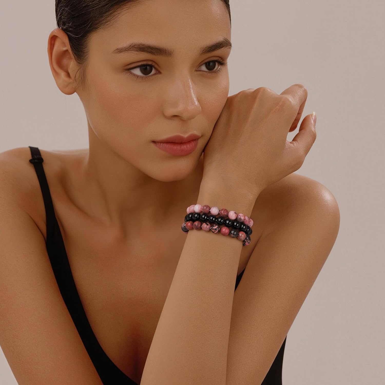 Vinswet Healing Crystal Bracelets for Women Men 8mm Tiger Eye Hematite Black Obsidian Natural Stone Beaded Stretch Bracelet Triple Protection Handmade Gemstone Reiki Spiritual Jewelry Gifts