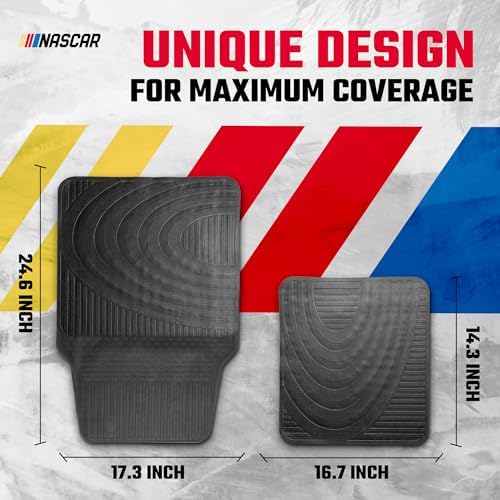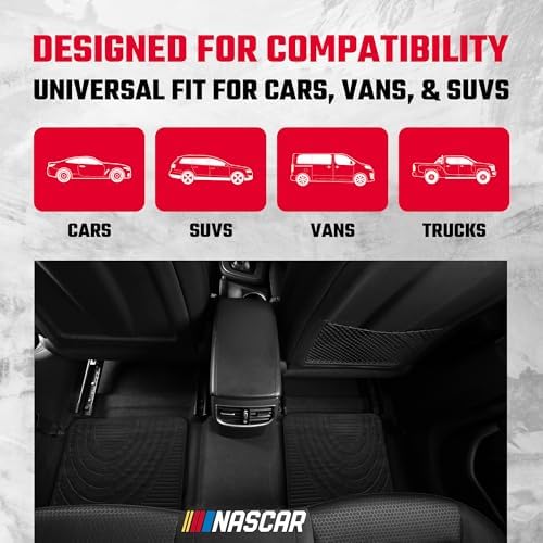 ALL-WEATHER DURABILITY – Premium rubber construction protects against dirt, snow, and water in every season. UNIVERSAL TRIM-TO-FIT DESIGN – Customize these mats to fit any car, truck, or SUV for a tailored look and superior coverage. ANTI-SLIP BACKING – Keeps mats securely in place, preventing sliding for safe and hassle-free use. EASY TO CLEAN – Effortlessly remove and rinse off for quick maintenance, ensuring your vehicle stays clean and fresh. STYLISH & FUNCTIONAL – Sleek black design enhances your vehicle's interior while offering reliable protection against wear and tear.