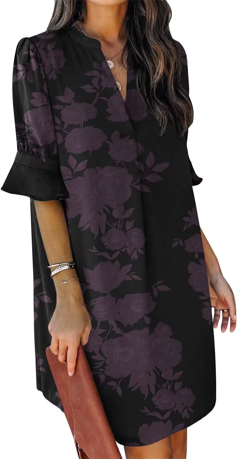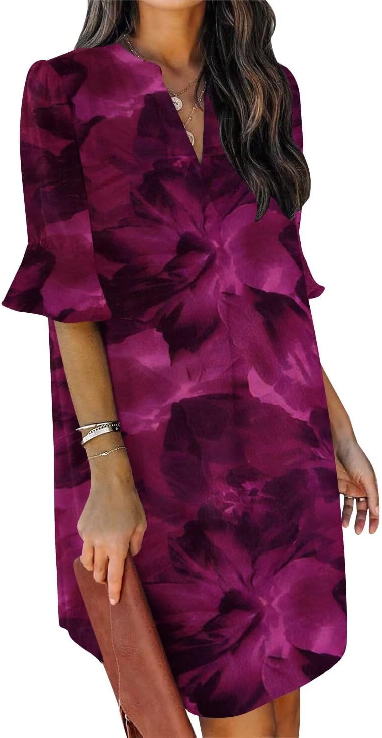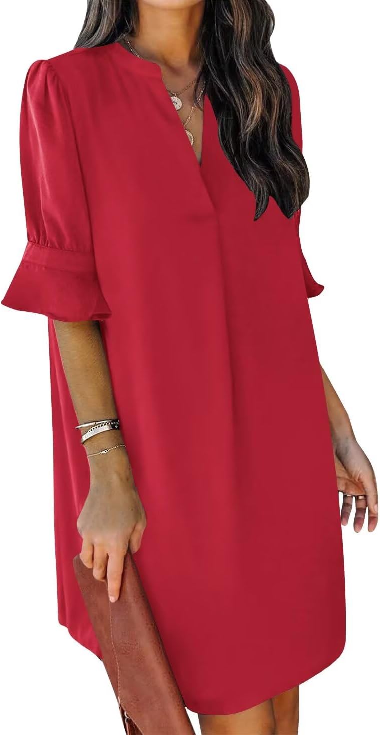 QACOHU Summer Dresses for Women V Neck Ruffle Short Sleeve Casual Shift Dress